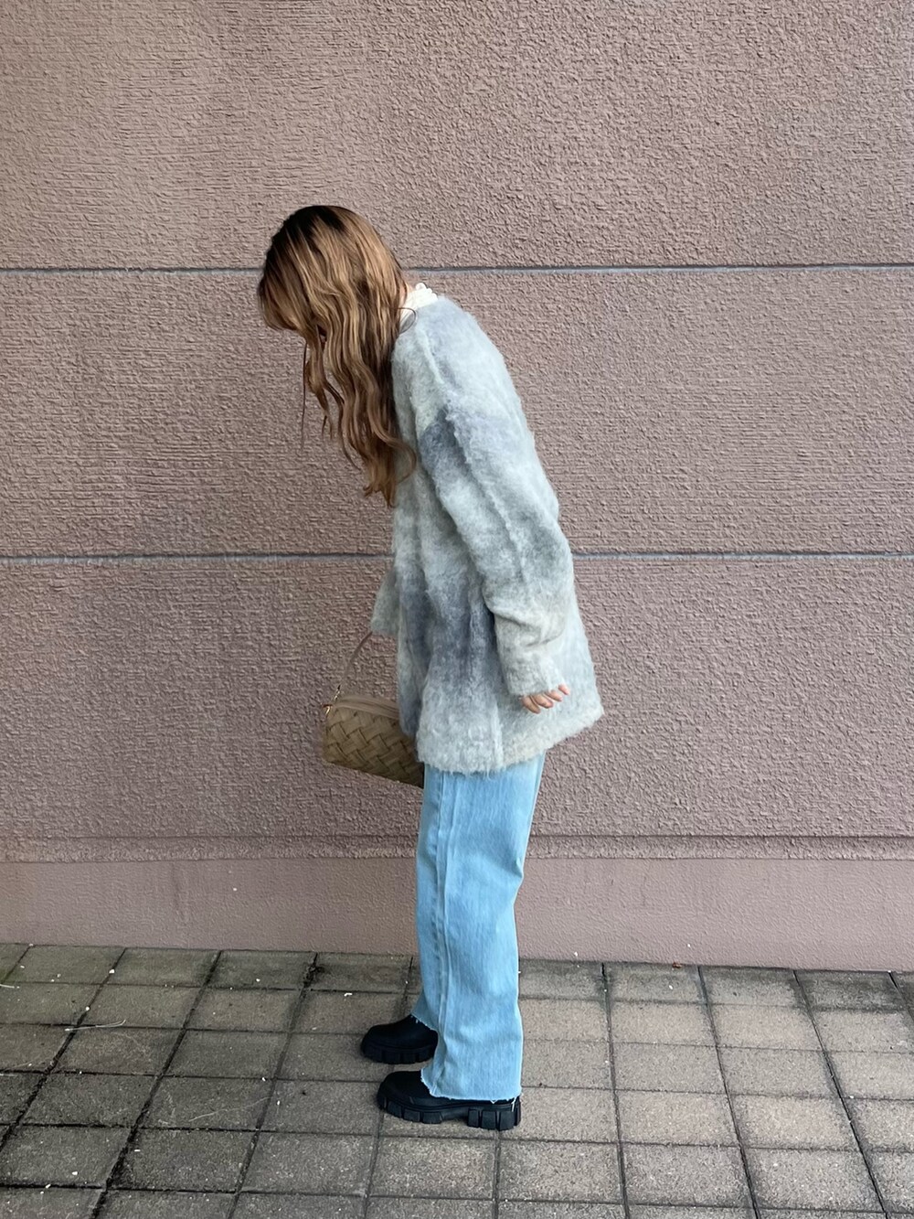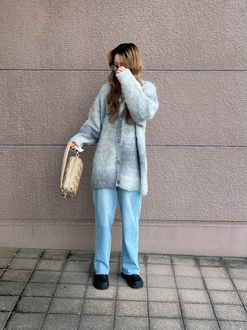 トップスはニットカーディガンでゆったり着たかったのでメンズのカーディガンを着用しました!サイズ感と色味が可愛いアイテムになっています!