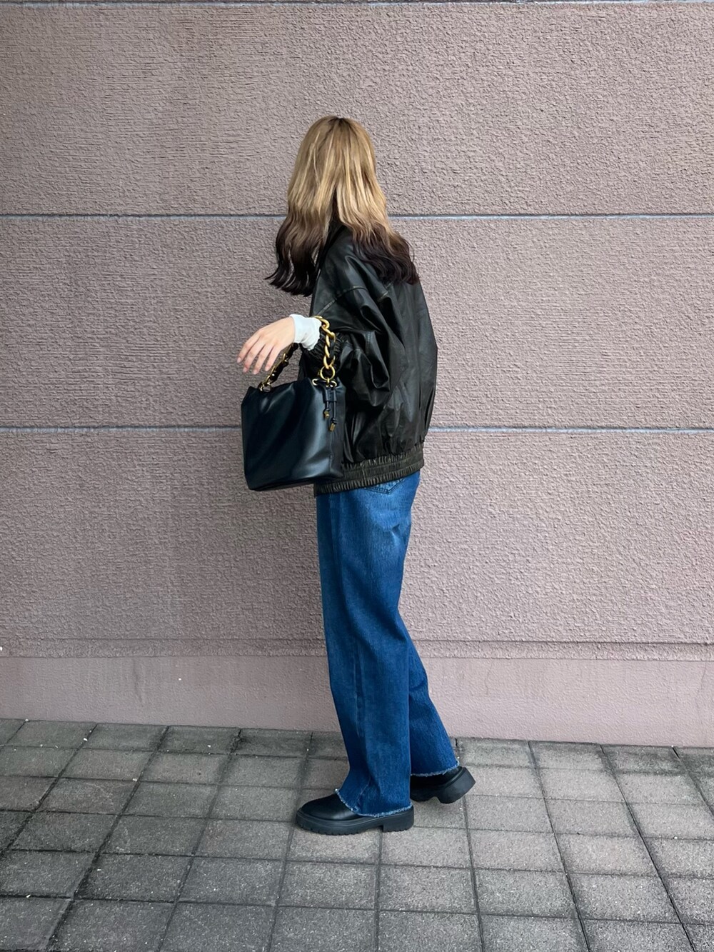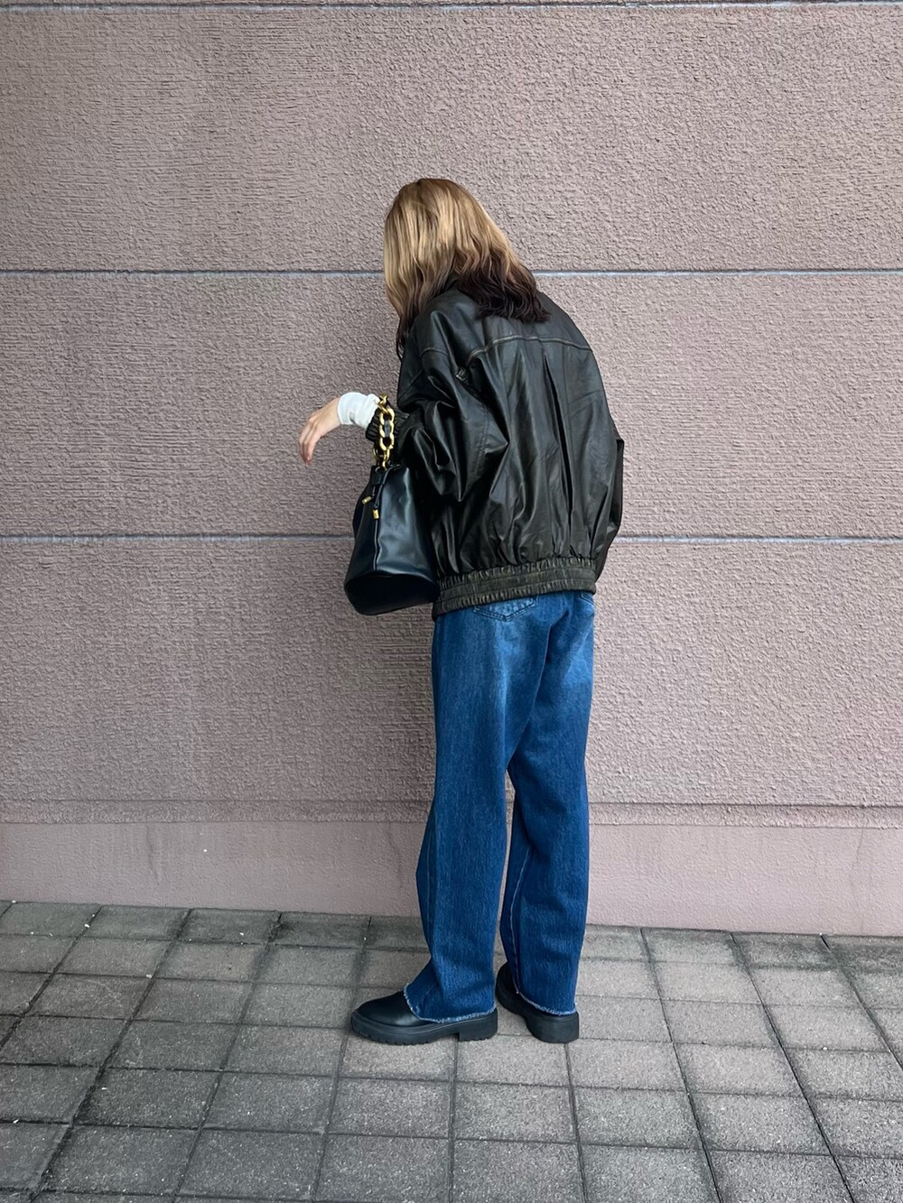 ボトムスはデニムパンツでトップスがレザージャケットなのでシンプルに合うデニムパンツにしてみました!