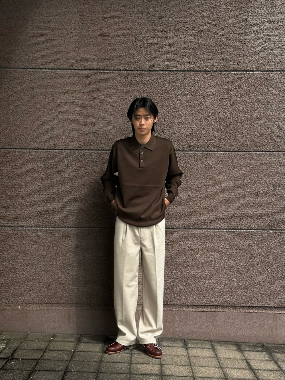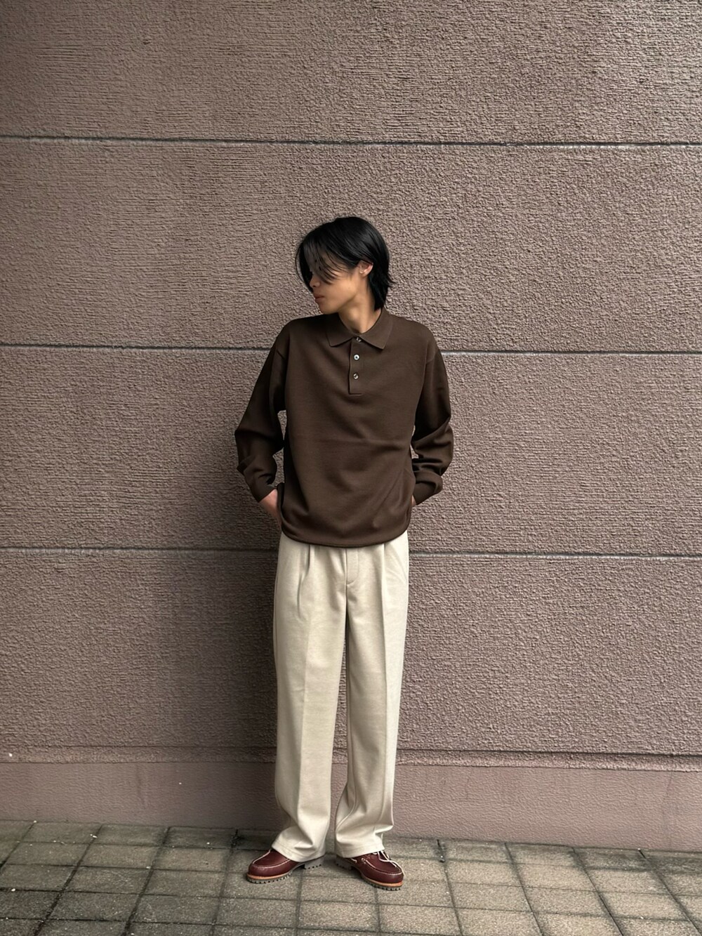 今回のコーディネートはニットポロシャツにスラックスを合わせたコーデです!