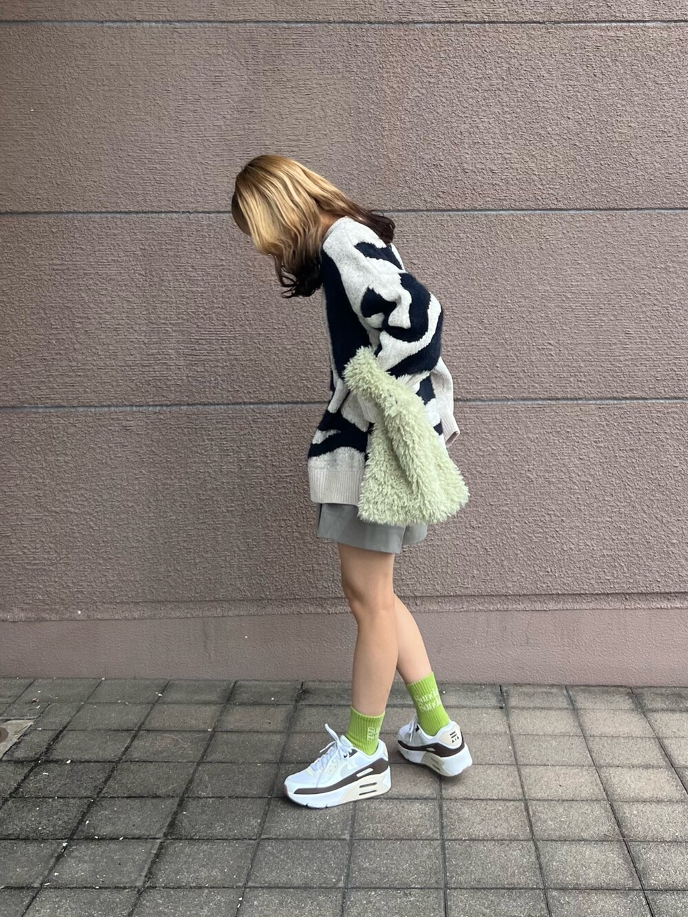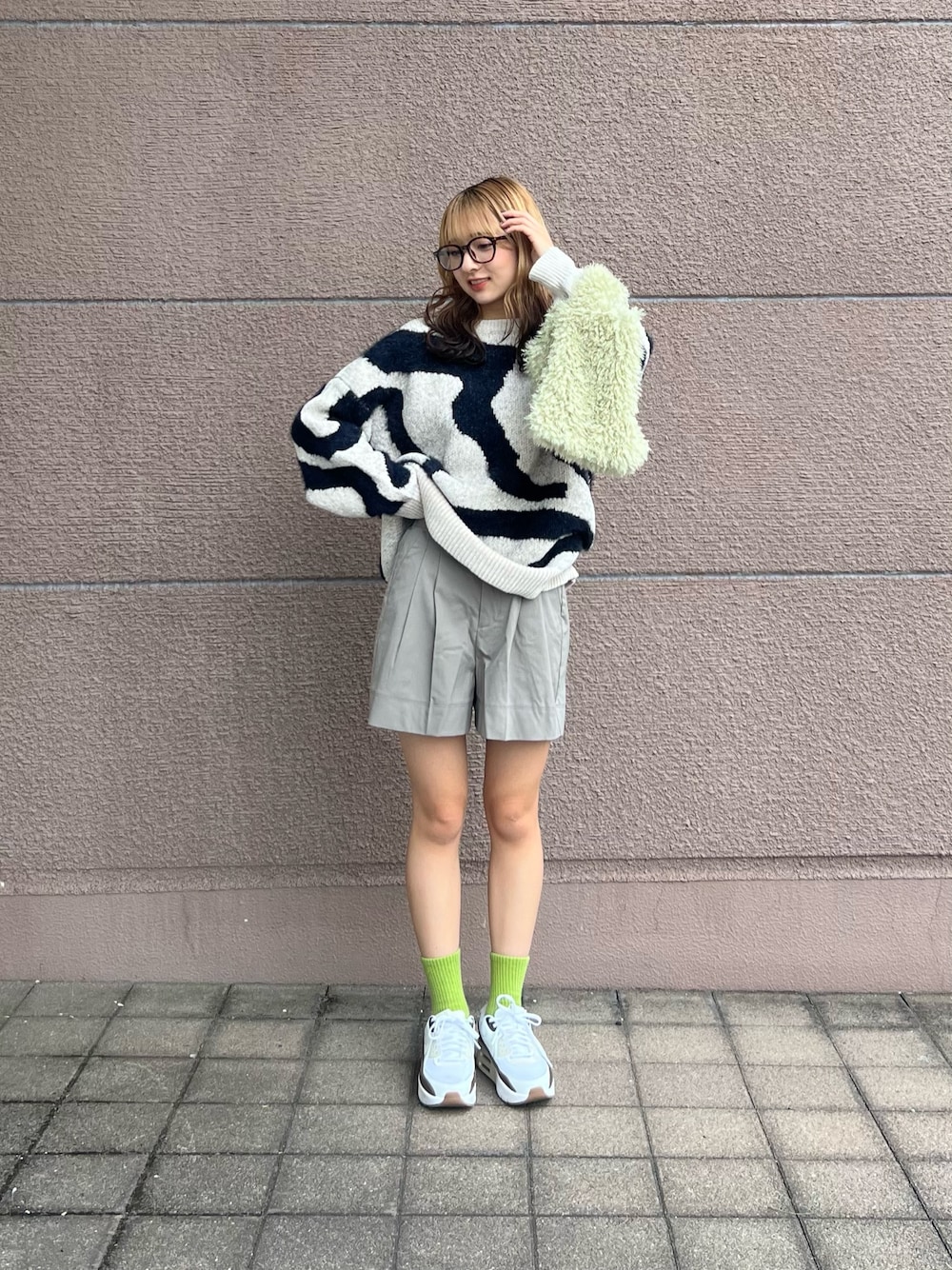 ボトムスはショートパンツでニットが大きめになっているのでダボッと着たくてショートパンツにしました!秋感があるカラーでとても可愛いアイテムだなと思います!