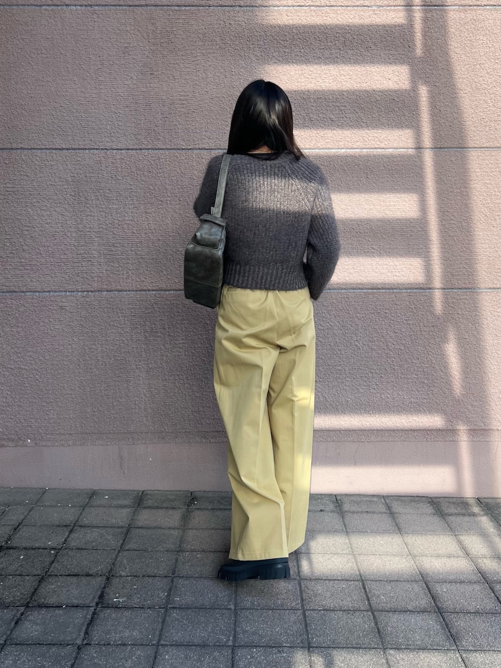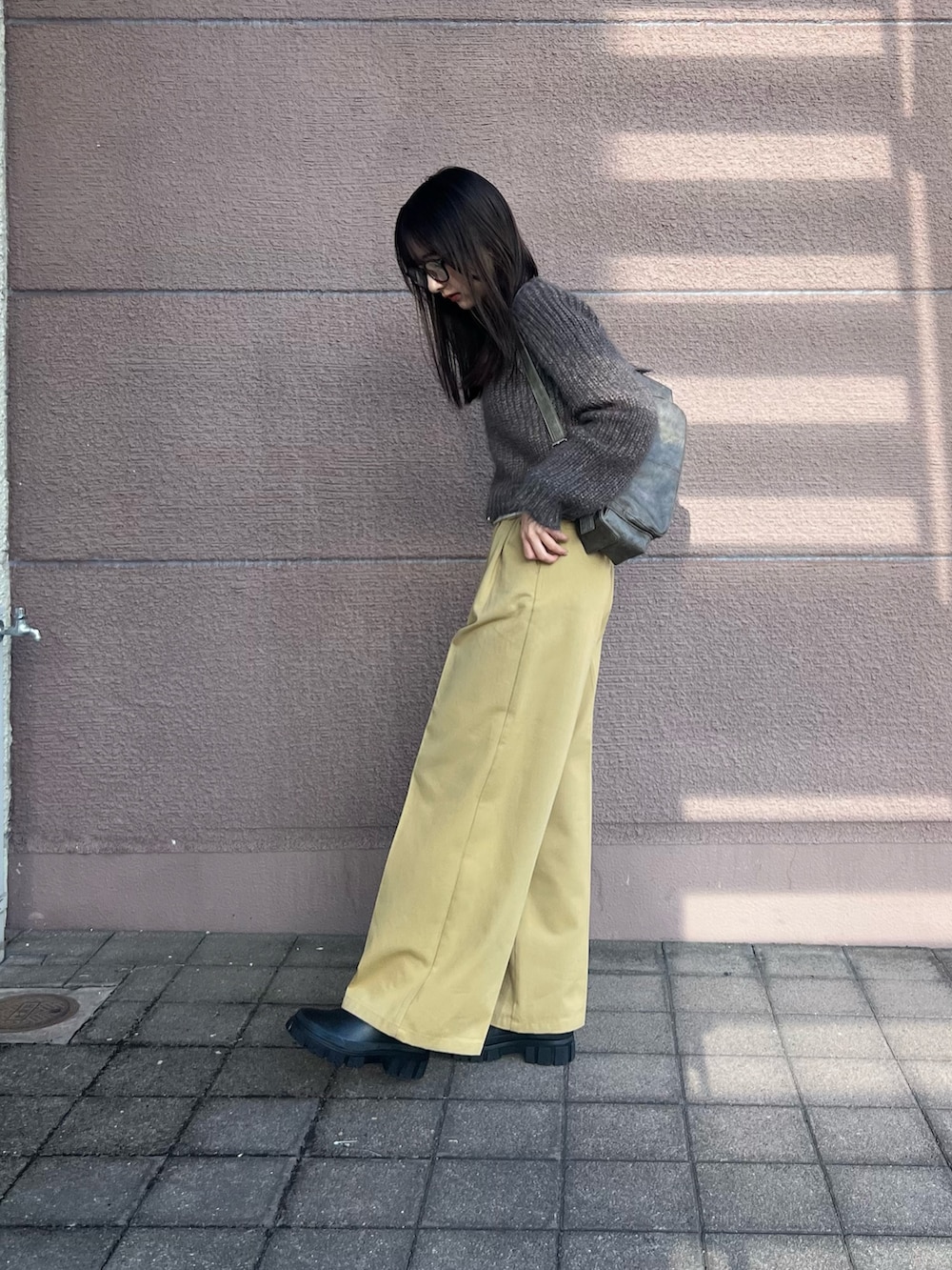 トップスはショートニットで裾の方にスリットが入っているのでスタイルが良く見えます!生地も分厚めなので暖かいです!