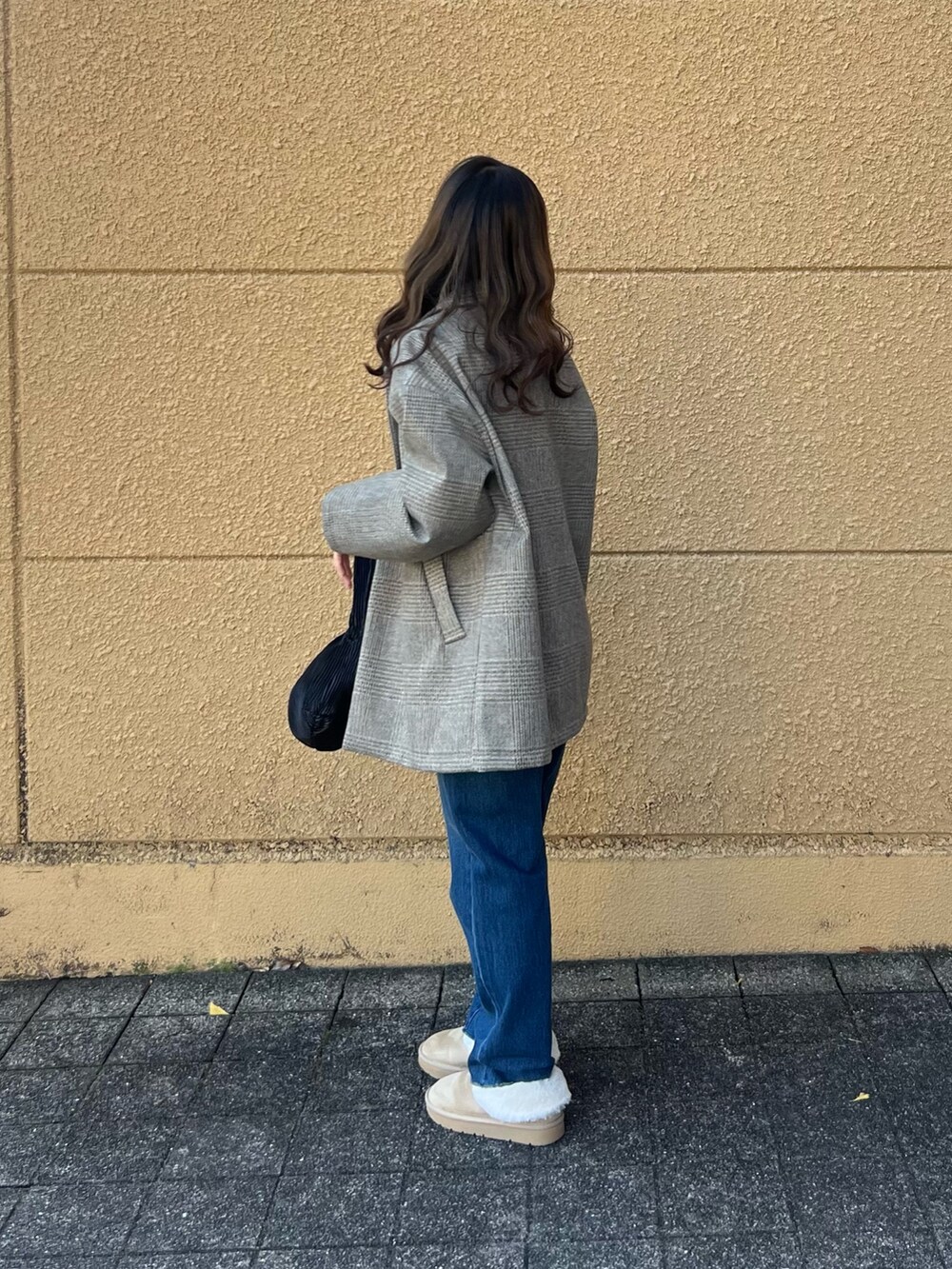 ジャケットはオーバーサイズになっていて分厚めのニットなどを着ても来やすいと思います!デザインもシルエットも可愛いアイテムになっています!♡