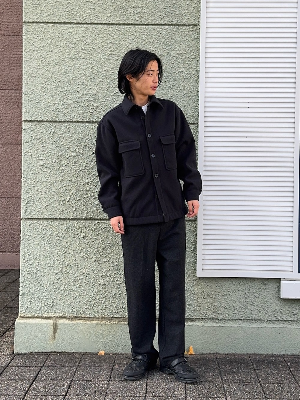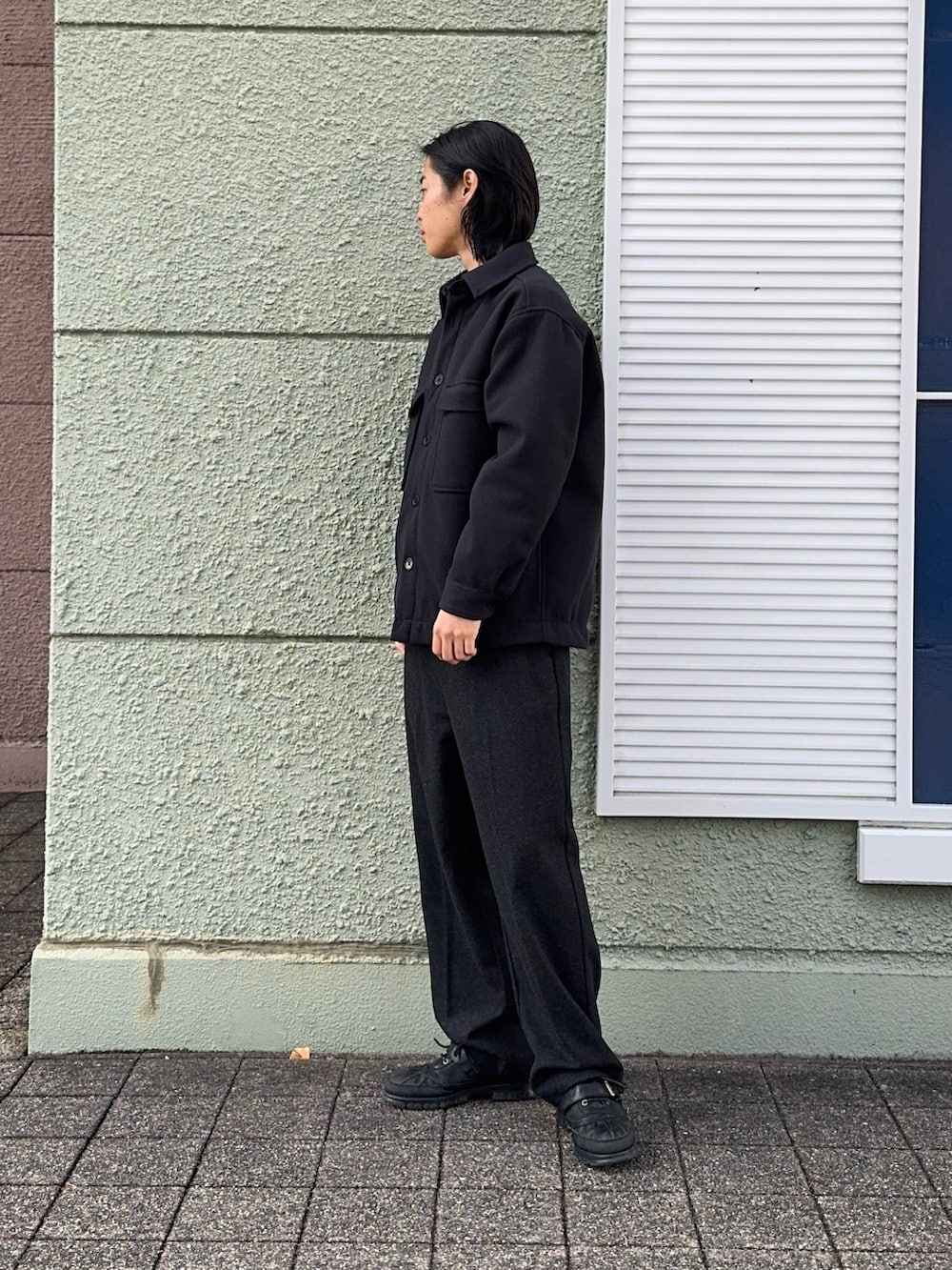 今回のコーディネートは黒のキルトジャケットにウールスラックスを合わせました!ジャケットはシンプルなデザインで使いやすいアイテムです!ウールスラックスは暖かく、シルエットがとてもよくおすすめです!チクチク感とか全くないのもおすすめです!