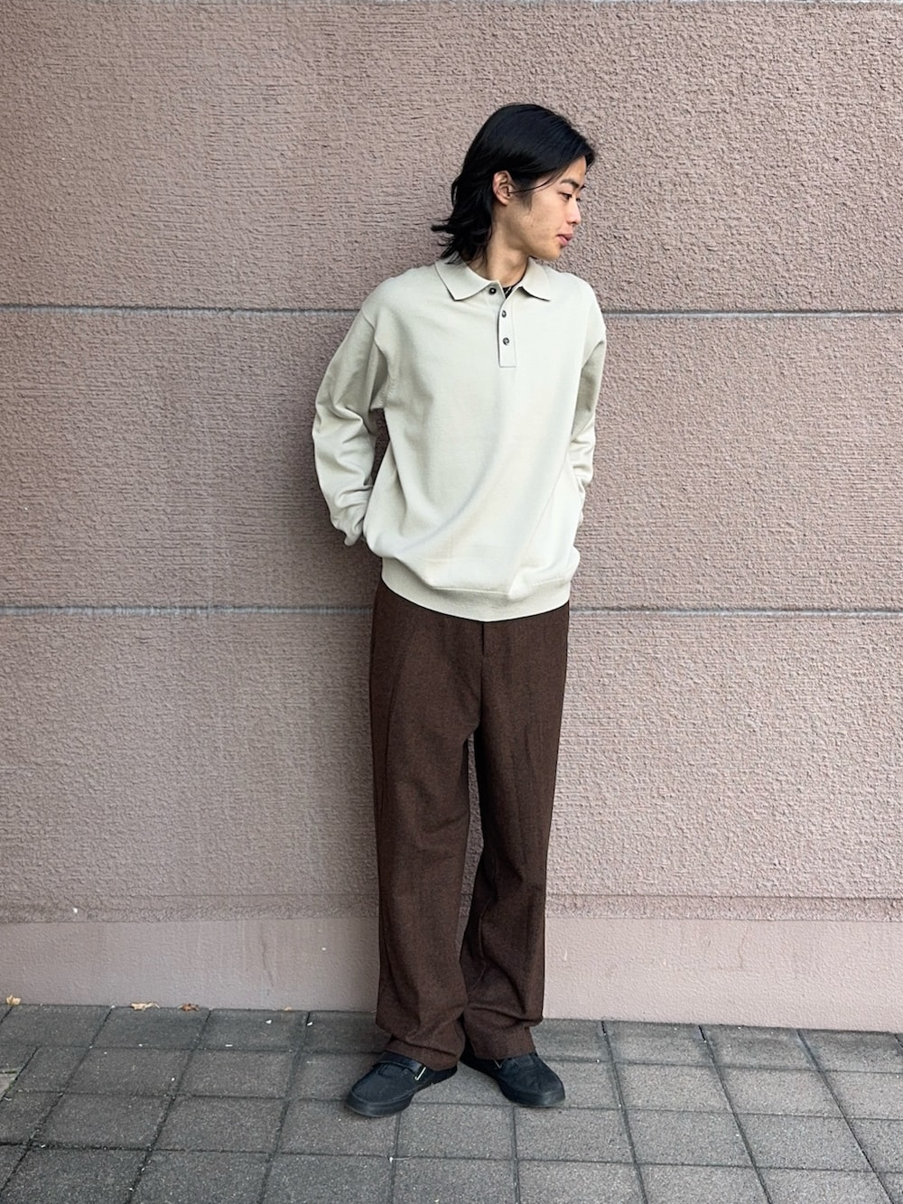 シンプルですが、オシャレに見える気がするアイテムです!今の季節だとインナーとしてがおすすめです!スラックスはシルエットが良く合わせやすいパンツです!
