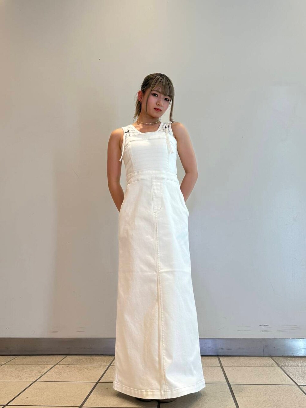 色がOFF WHITEなため中に同じ色や白系のタンクトップ.キャミソールを着ていただくのがおすすめです!!