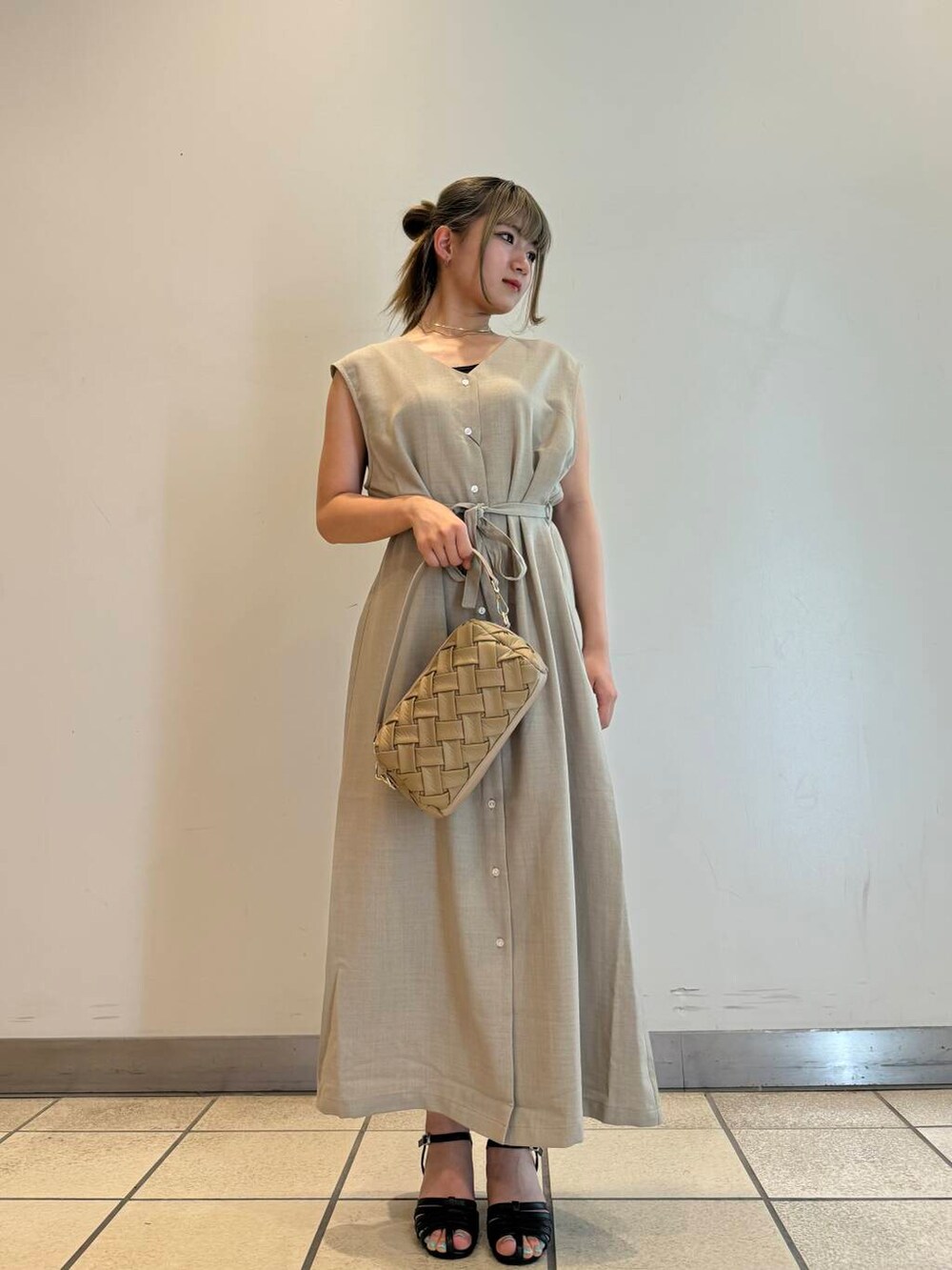 店頭でも大人気なリネンライクウエストワンピース!!ウエスト調整が紐でできるので快適に着れる商品となっています!!!!