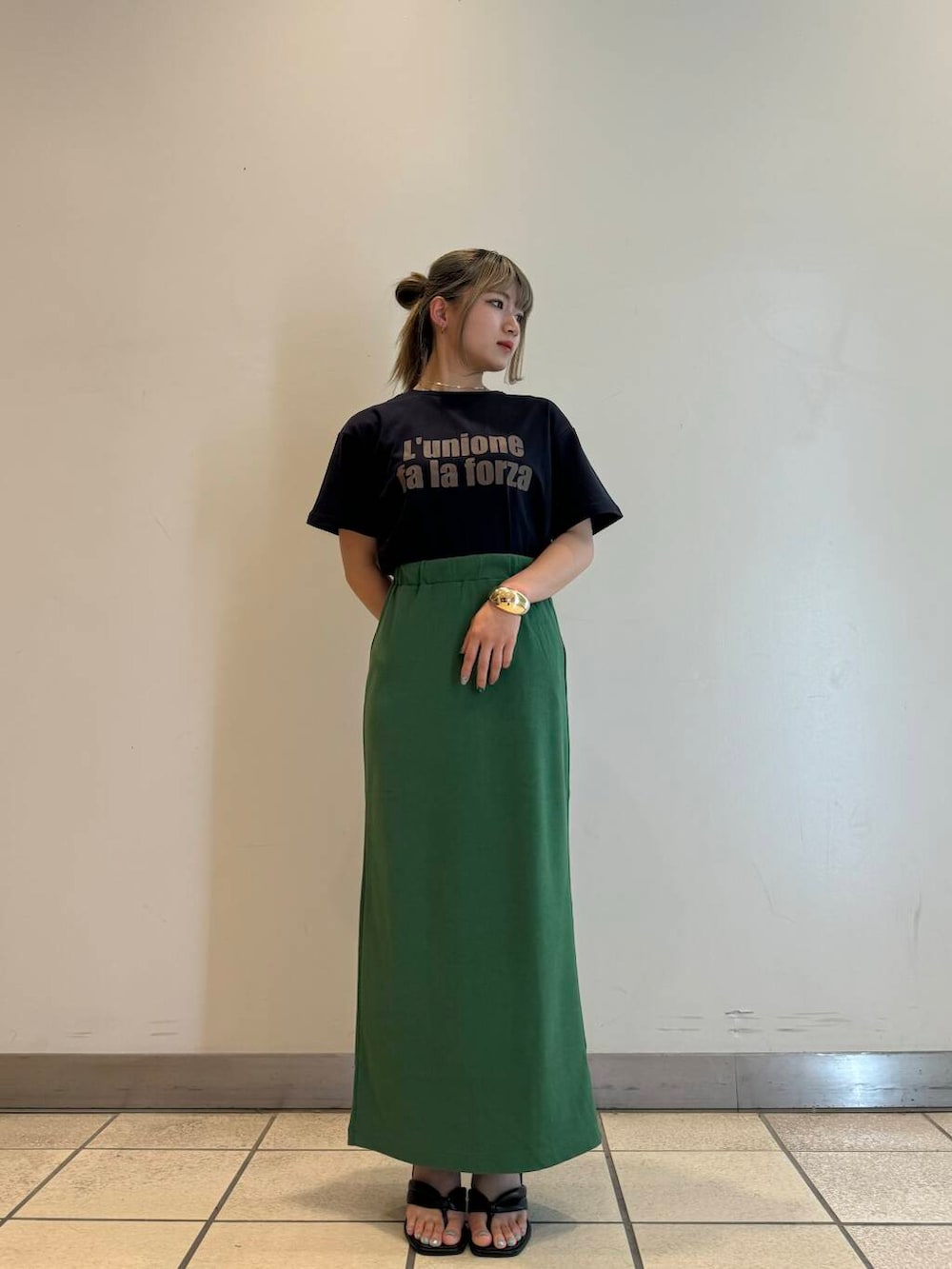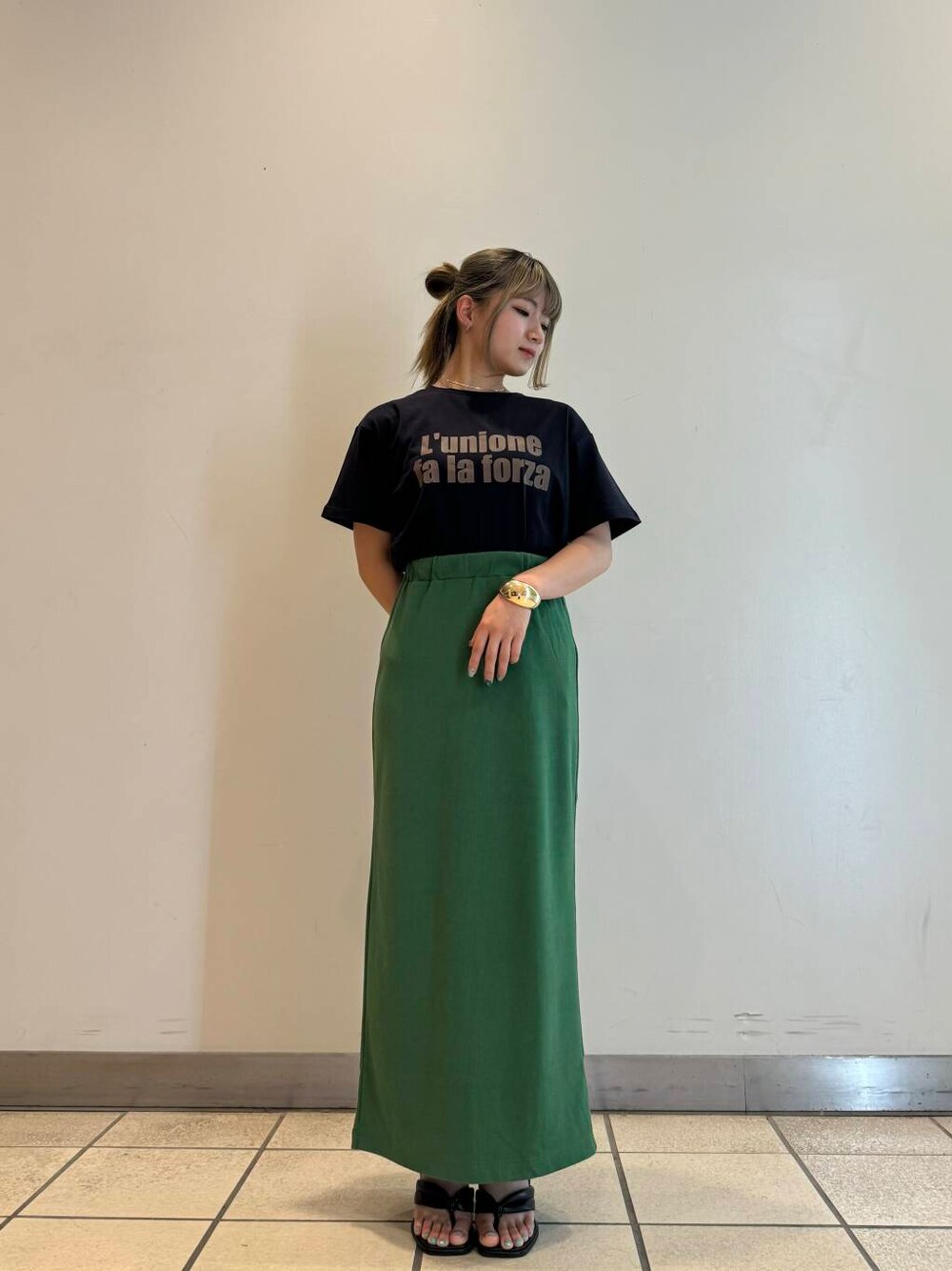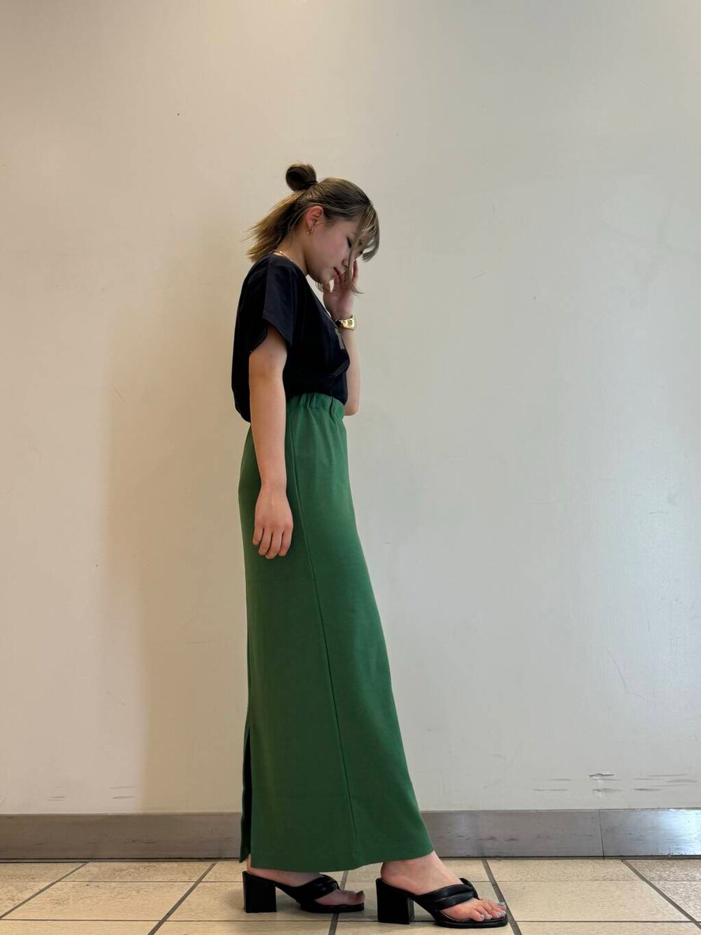 そこにリブロングスカートを合わせることで大人らしさ◎