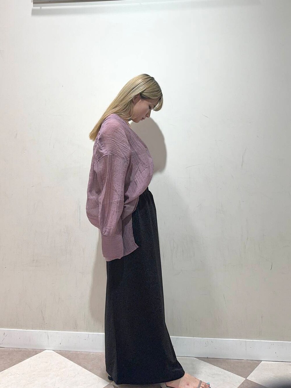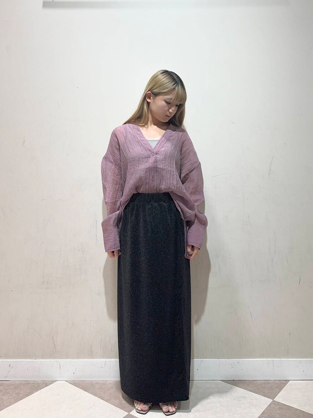 Vネックシアーブラウスにスカートを合わせることで大人さをだすことができます!