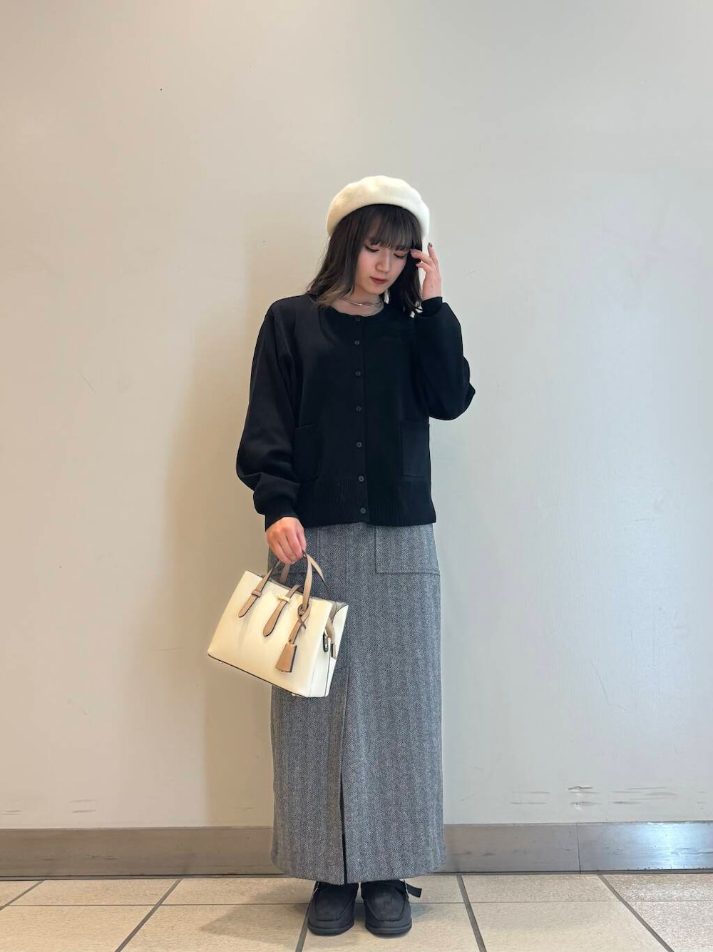そこにスカートを着ることで大人らしさをだせるのですが、ベレー帽を着用することで可愛らしさもだせて組み合わせバッチリです!!⟡.·