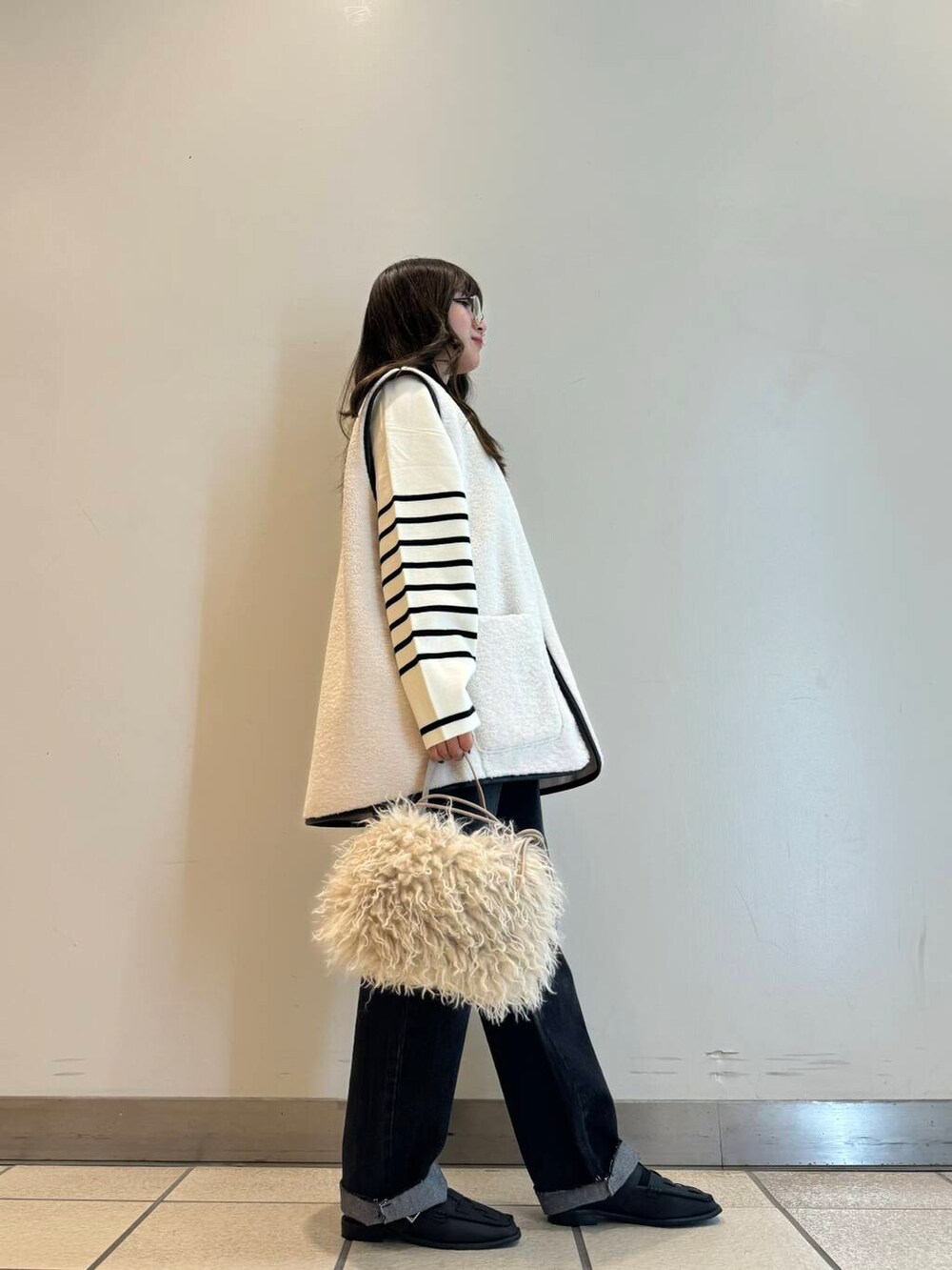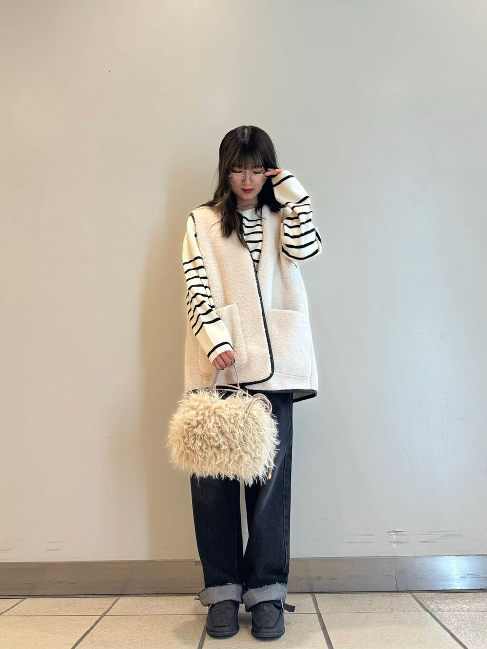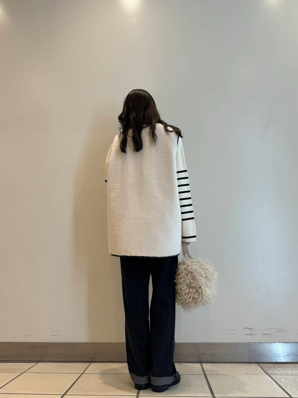 ニットプルオーバーにリバーシブルムートンボアベストを合わせて、the女子コーデにしました!
