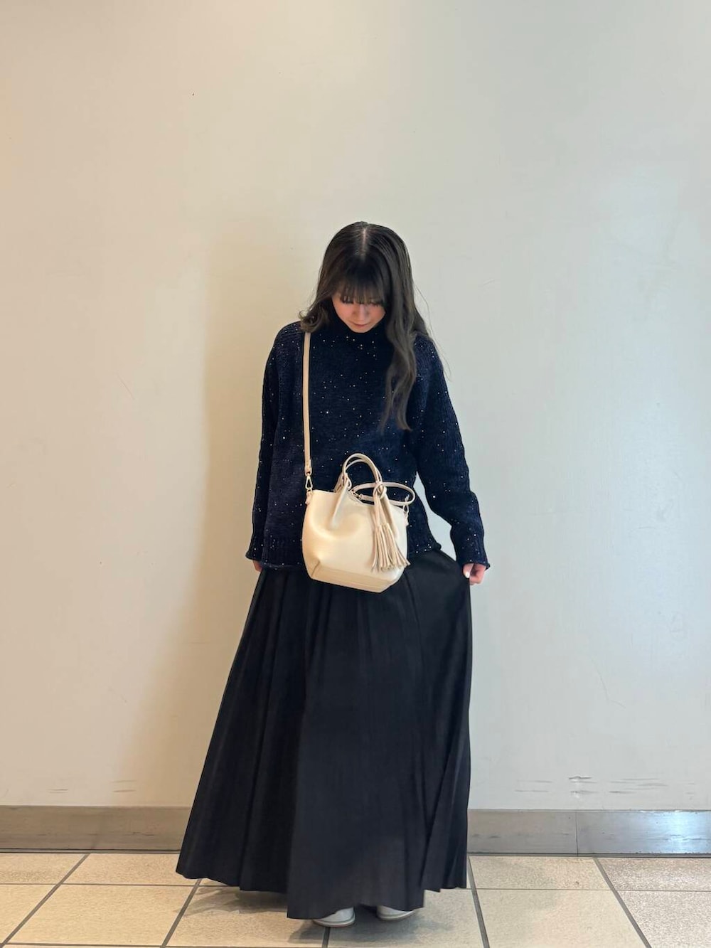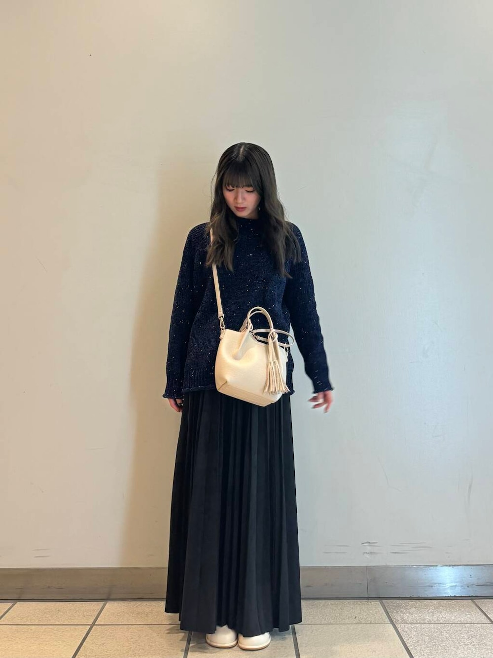 トップスのニットはラメが入っており、キラキラしているのがとても可愛い♡