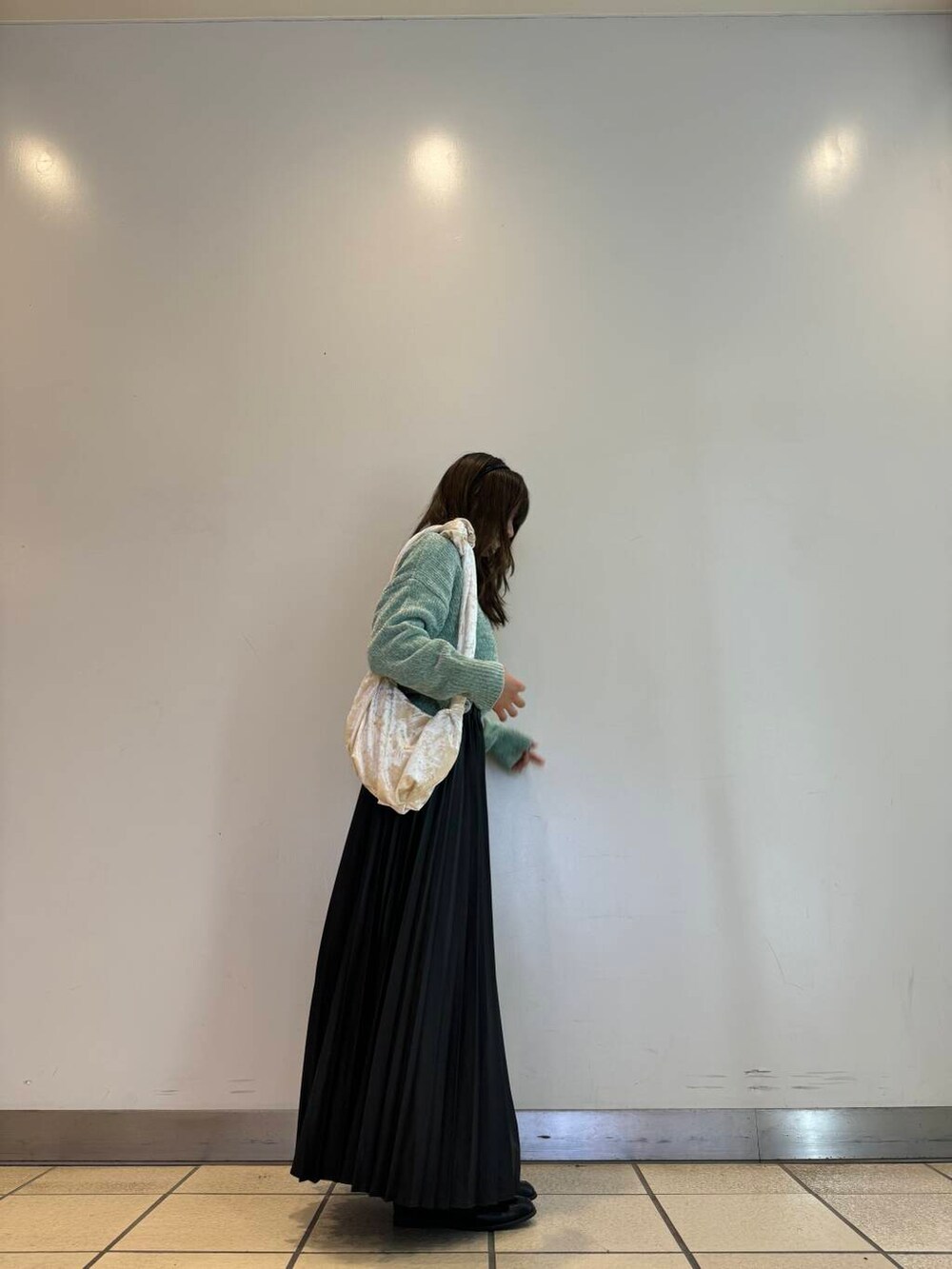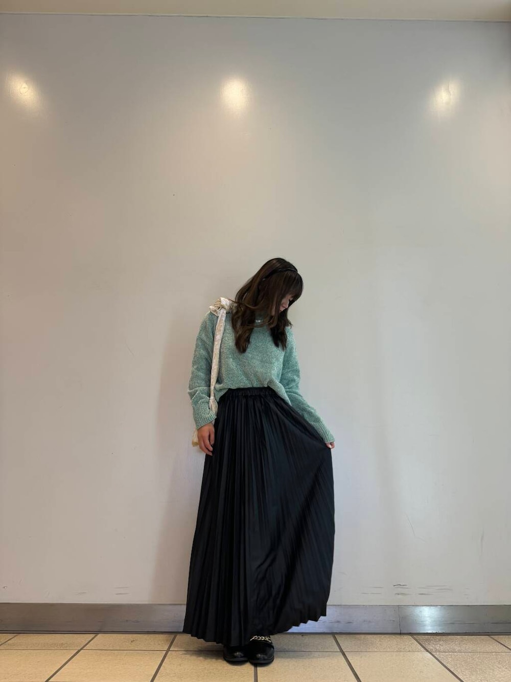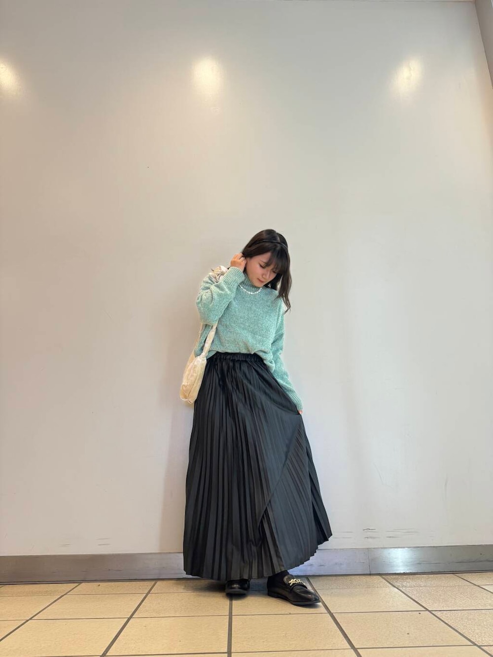 ハイネックニットにスカートを履くことで女性らしさup⤴️