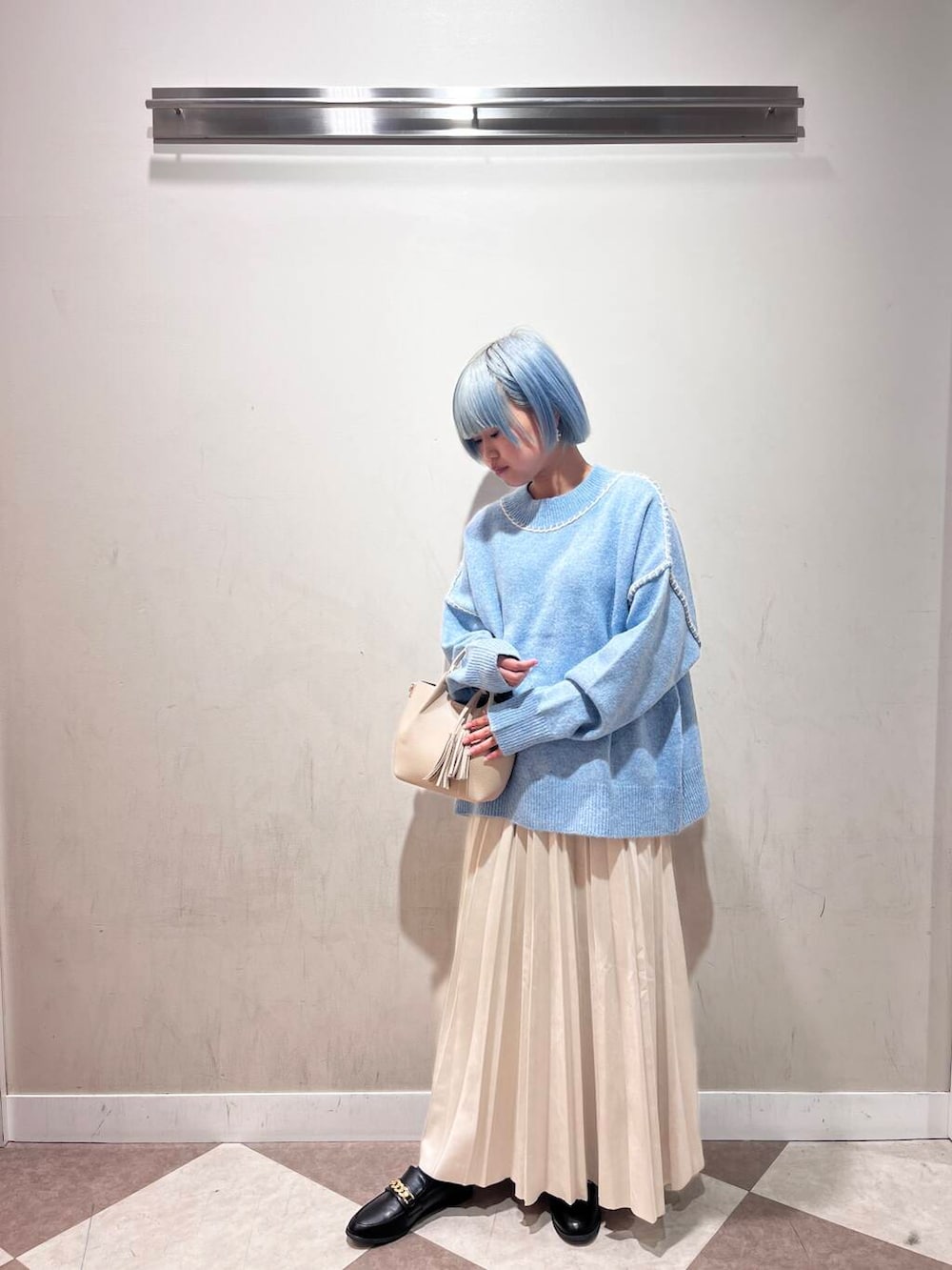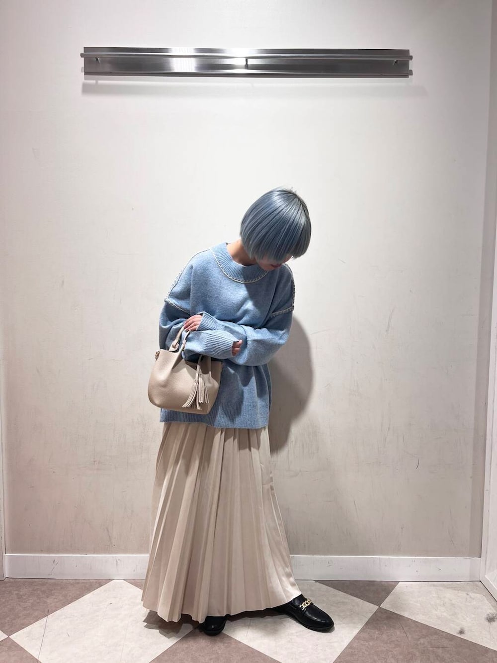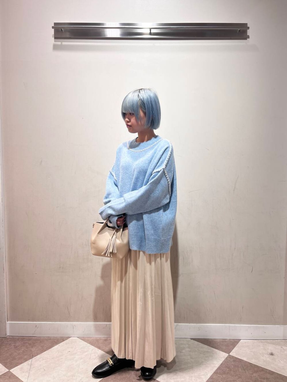 新作のステッチクルーネックニットのブルーがとっても可愛かったのでコーデ組んでみました!✨️