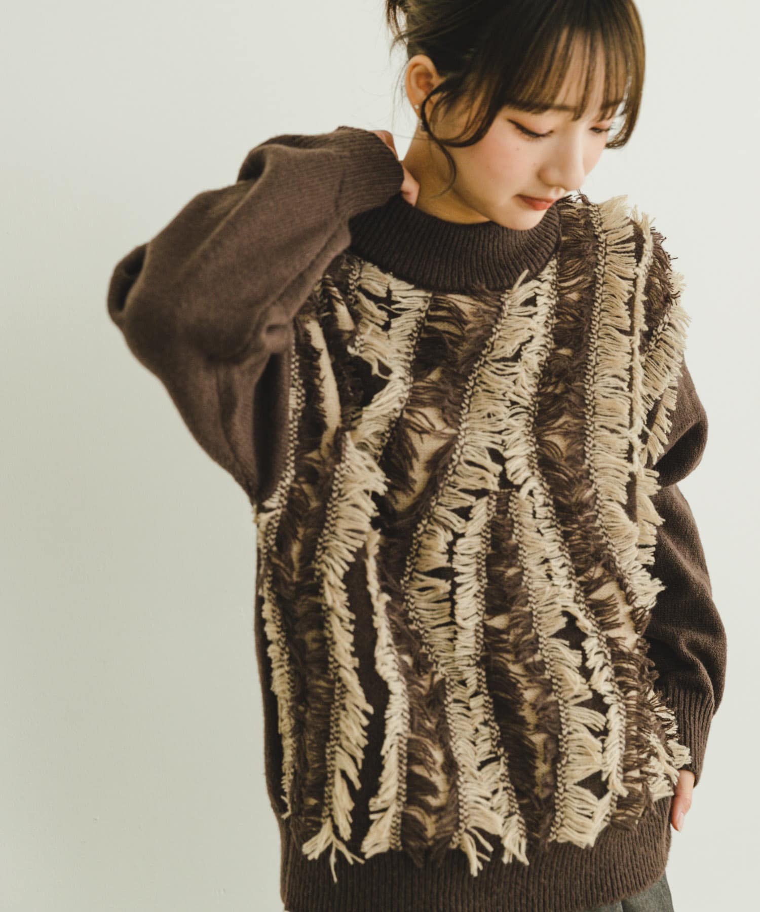 前だけなっていて、後ろは何もないのがまた可愛いニットとなっています⟡.·