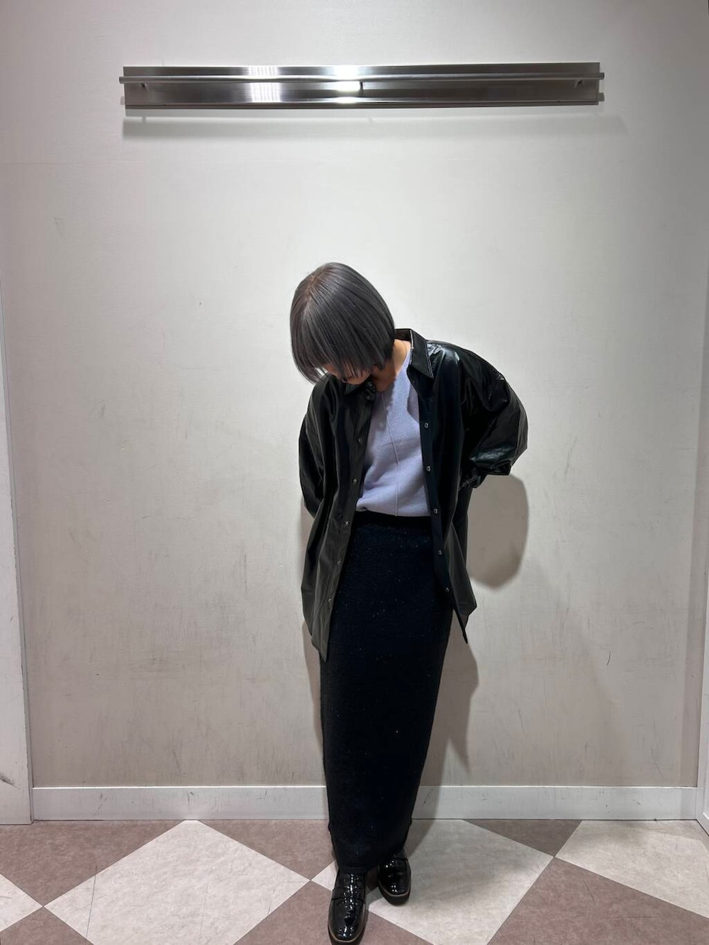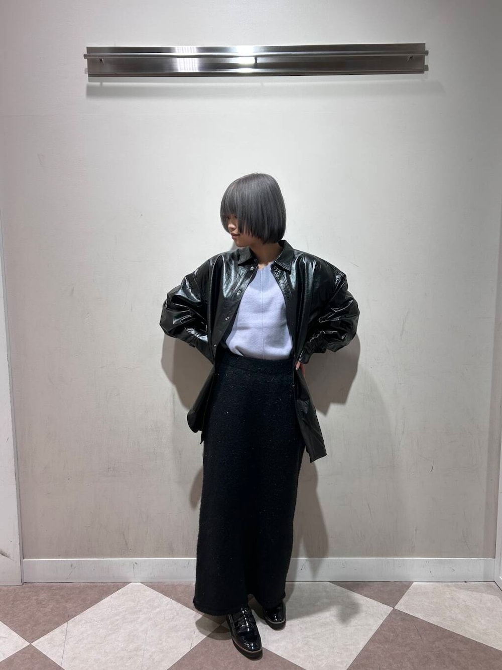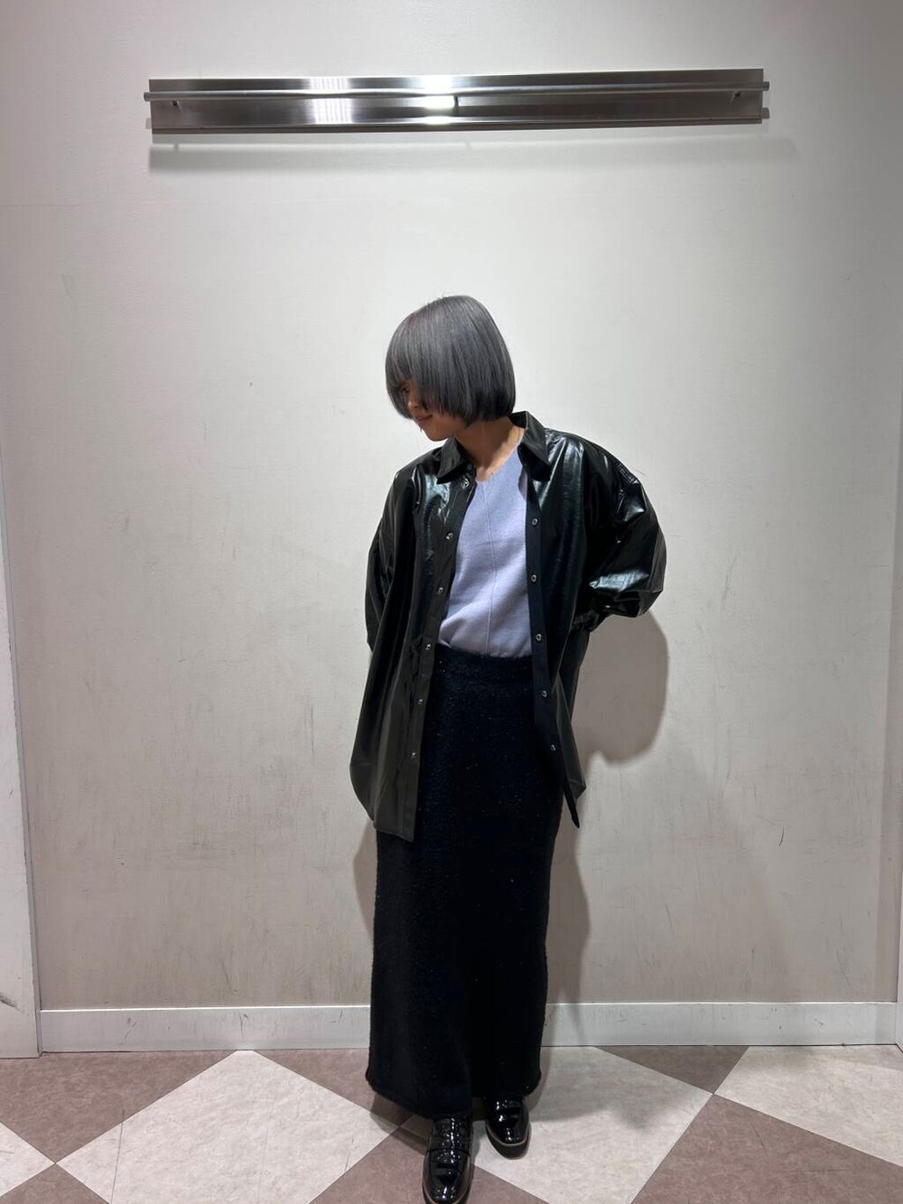 差し色にパープルのニットをいれて黒でもシックな感じで仕上げました!