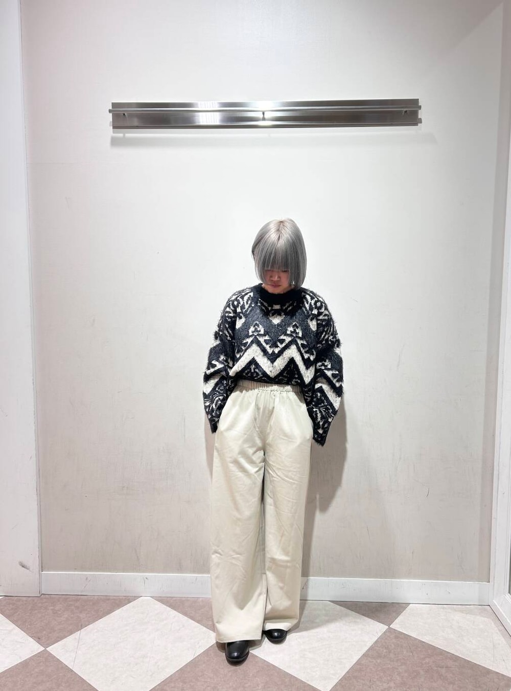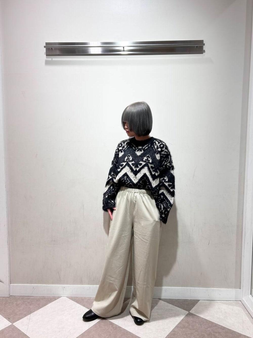 今回はパンツで合わせましたが、スカートでも合うようなニットだと思います✨️