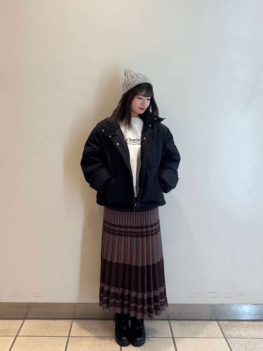 シンプルなニットに柄のあるスカートを合わせたら相性抜群!!!
