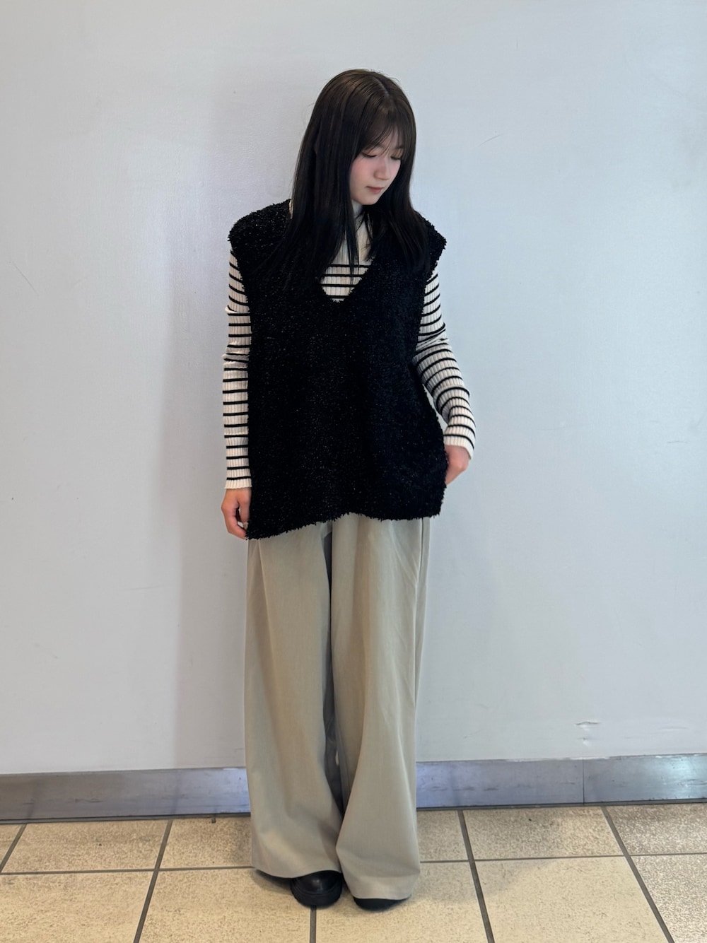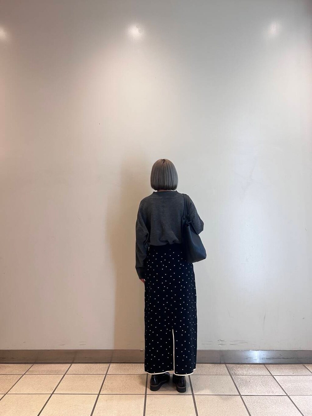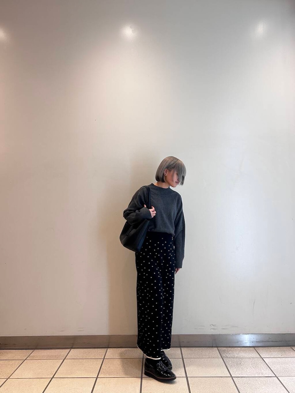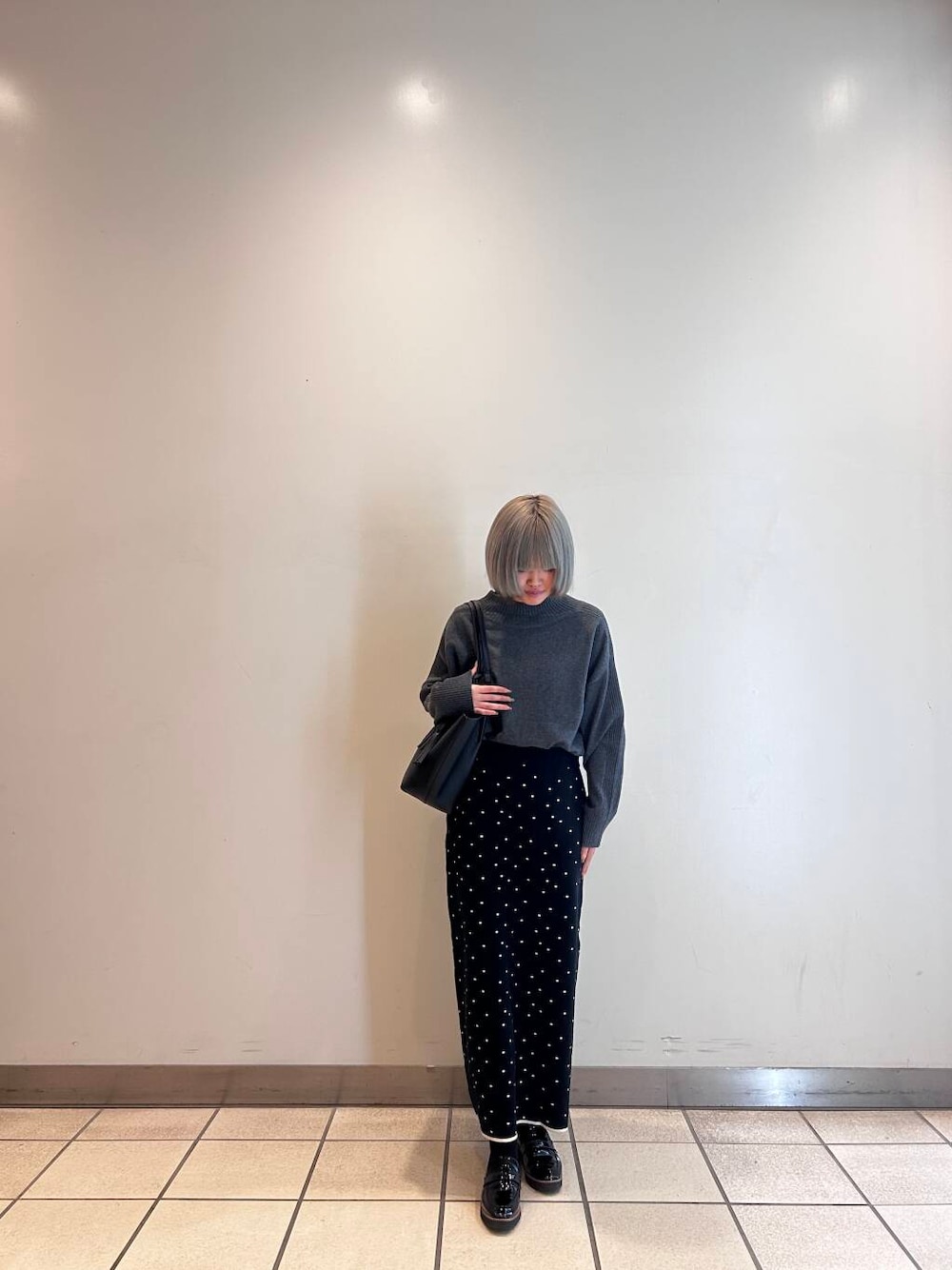 ニット生地のスカートに合わせて冬らしさ全開にしました!
