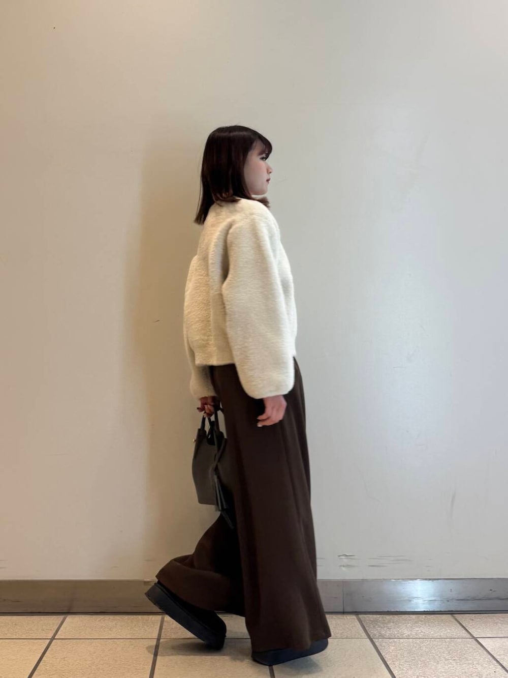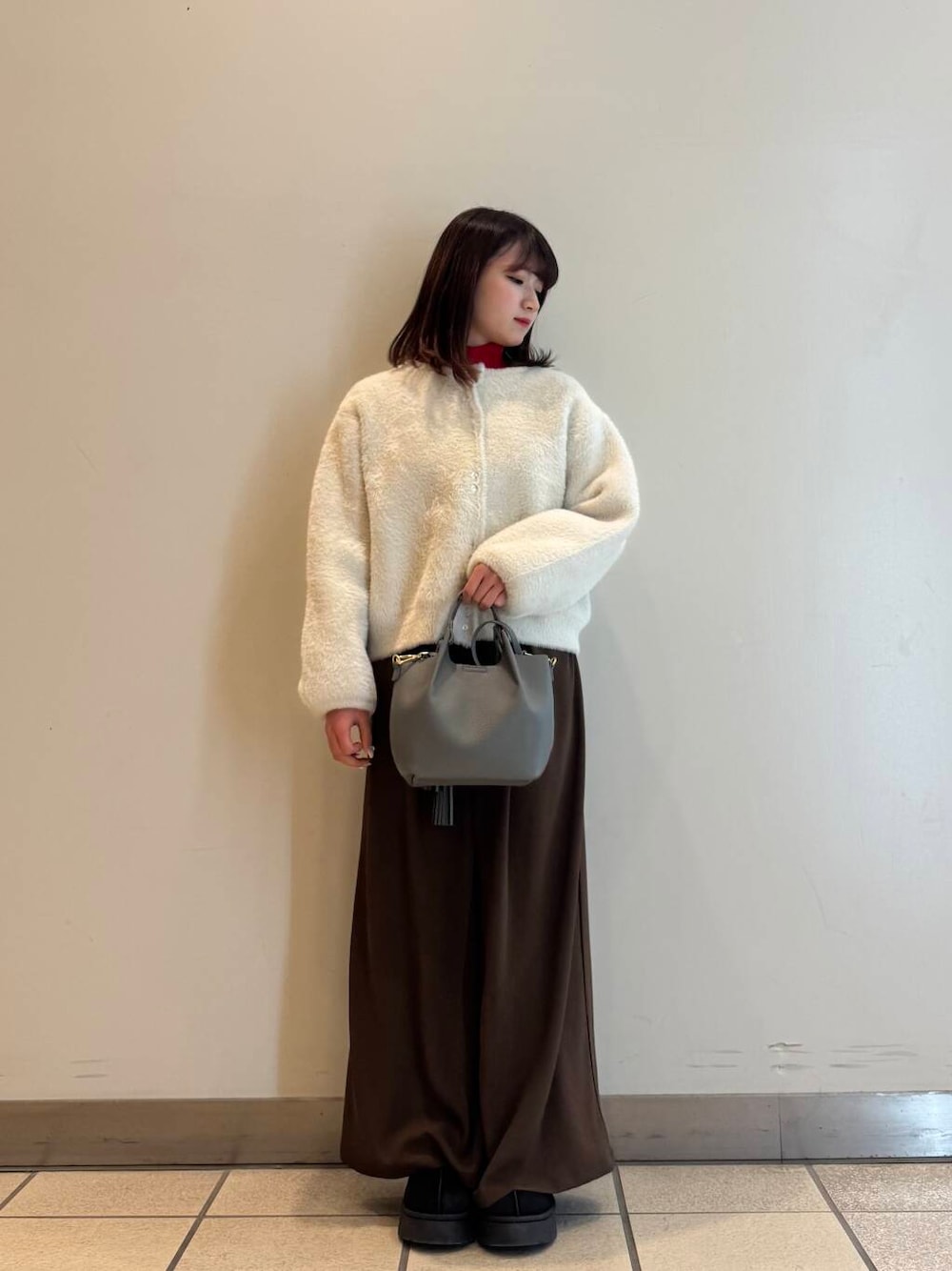人気のダブルフェイスニットカーデにモチハイのREDを合わせると可愛すぎるコーデになります!!おすすめコーデ!