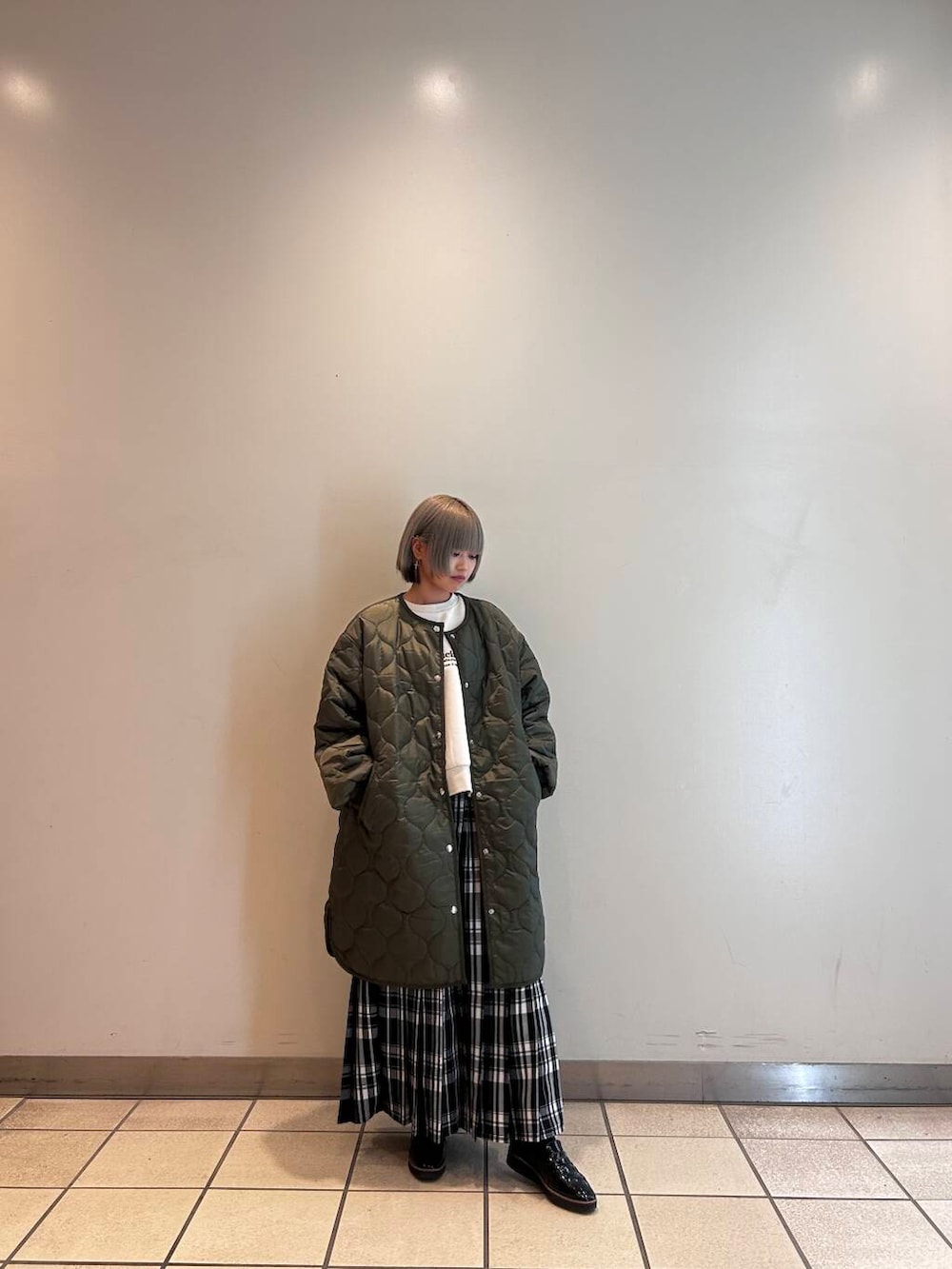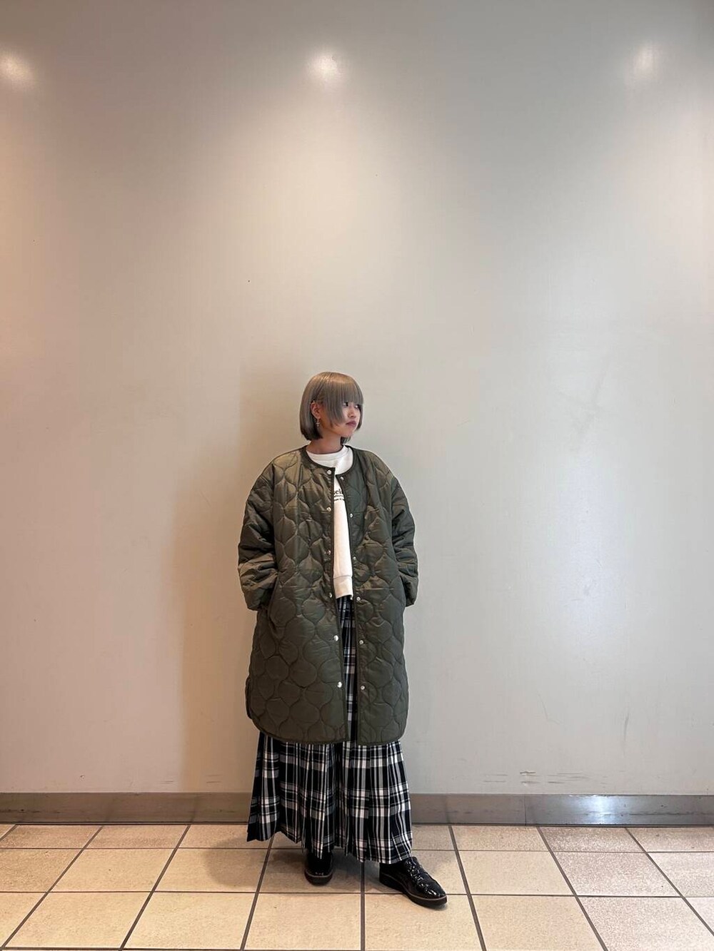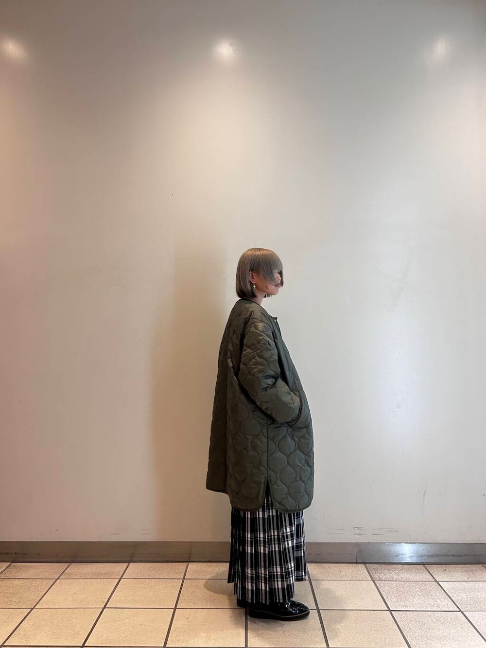 カーキのキルトコートで甘めにスタイリング組んでみました!