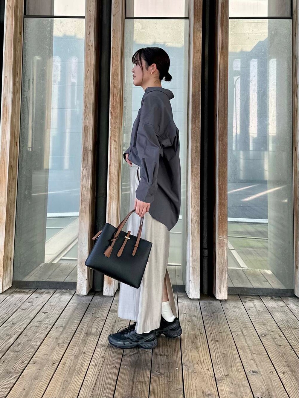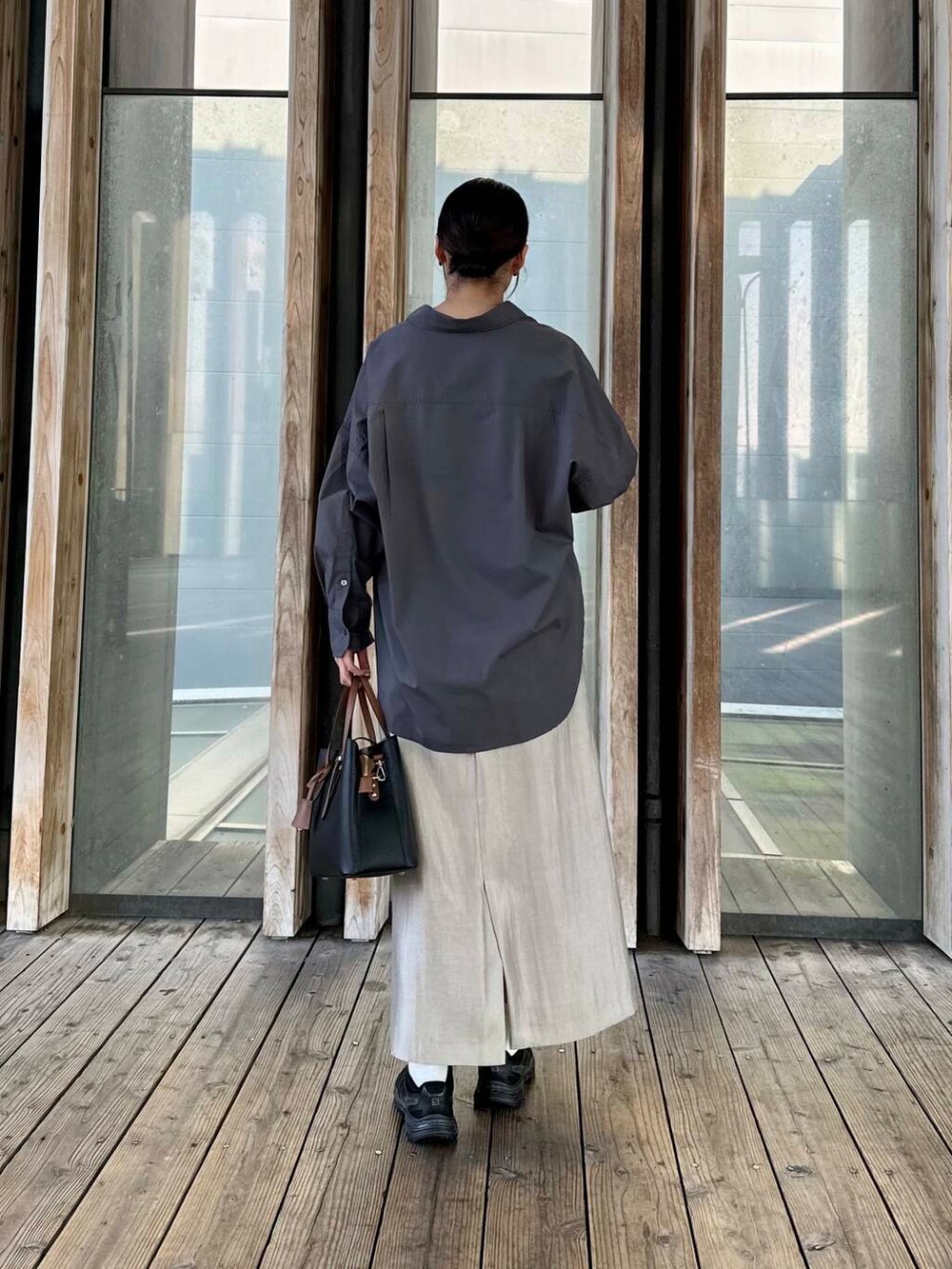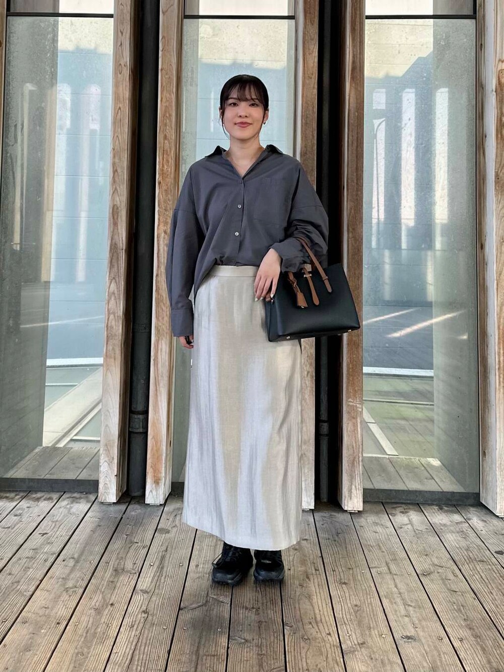長すぎない丈感と後ろにスリットが入っているので、履きやすいスカートになっています✨
