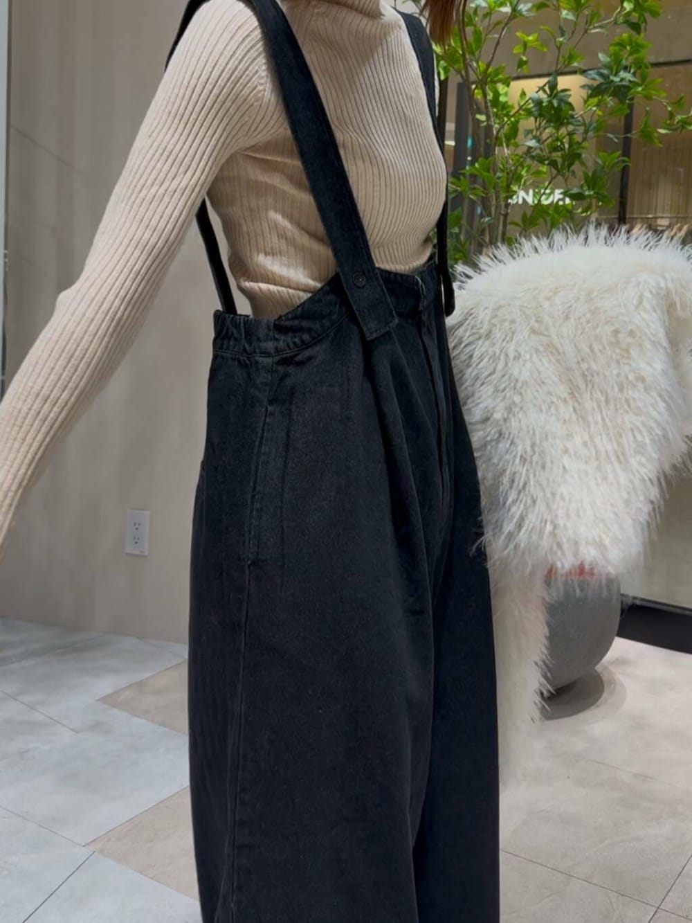 サスペンダー部分のボタンで長さを調整できるので、自分に合った着丈を楽しめますよ💙
