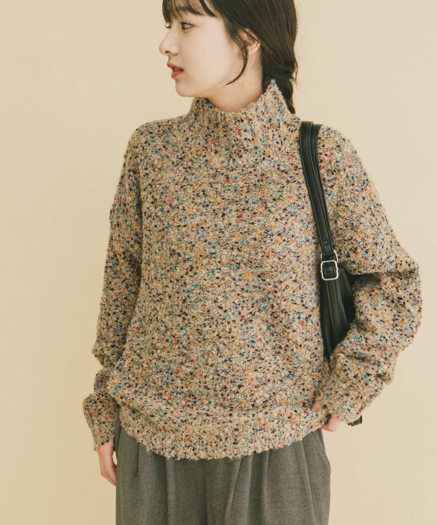 ハイネックカラーネップニット