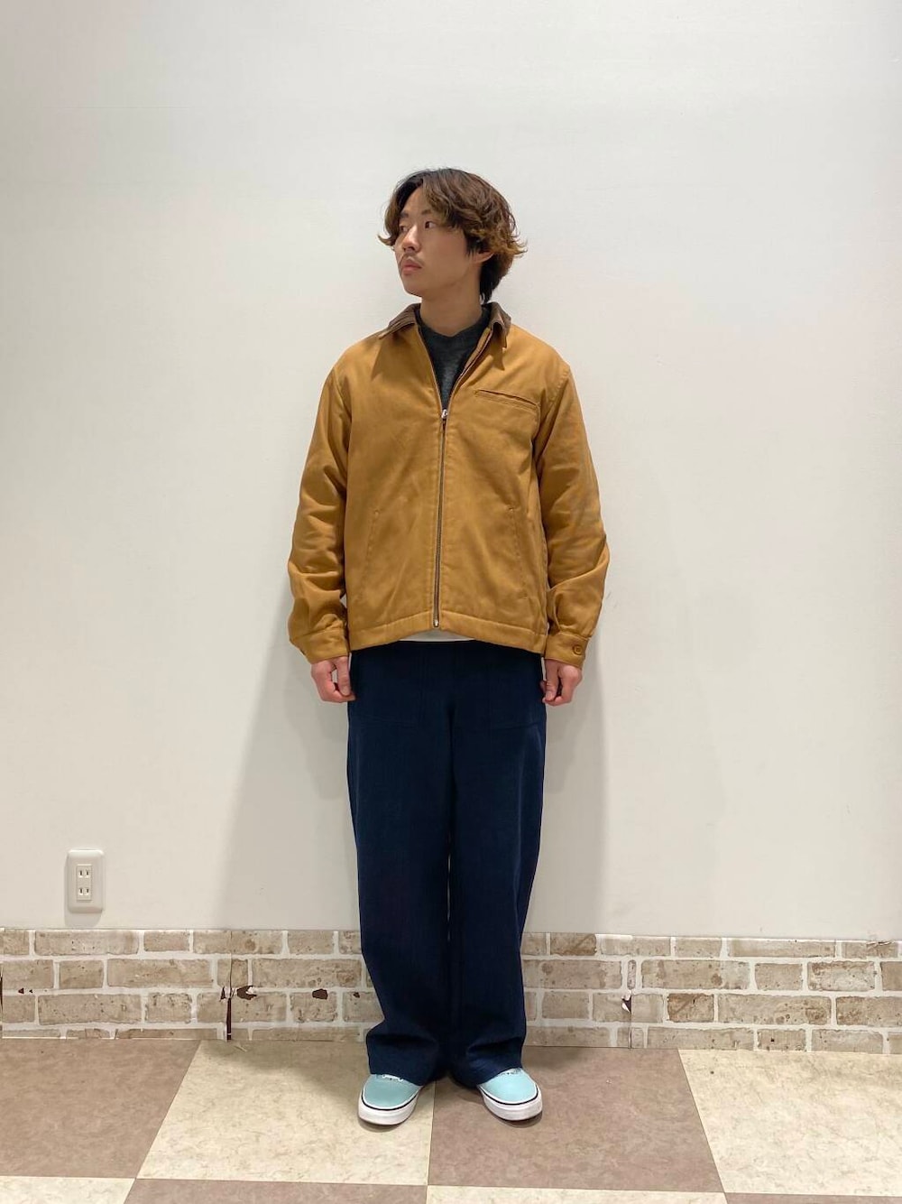 おうどいろのような色なので合わせずらそうにも見えますが、他のアイテムで追いついたアイテムを揃えてもらうと、まとまりのよいコーデになります!