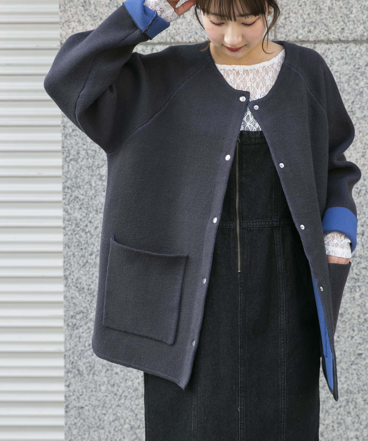 裏地の配色もかわいく袖を折り返して見せることでコーディネートのアクセントに◎