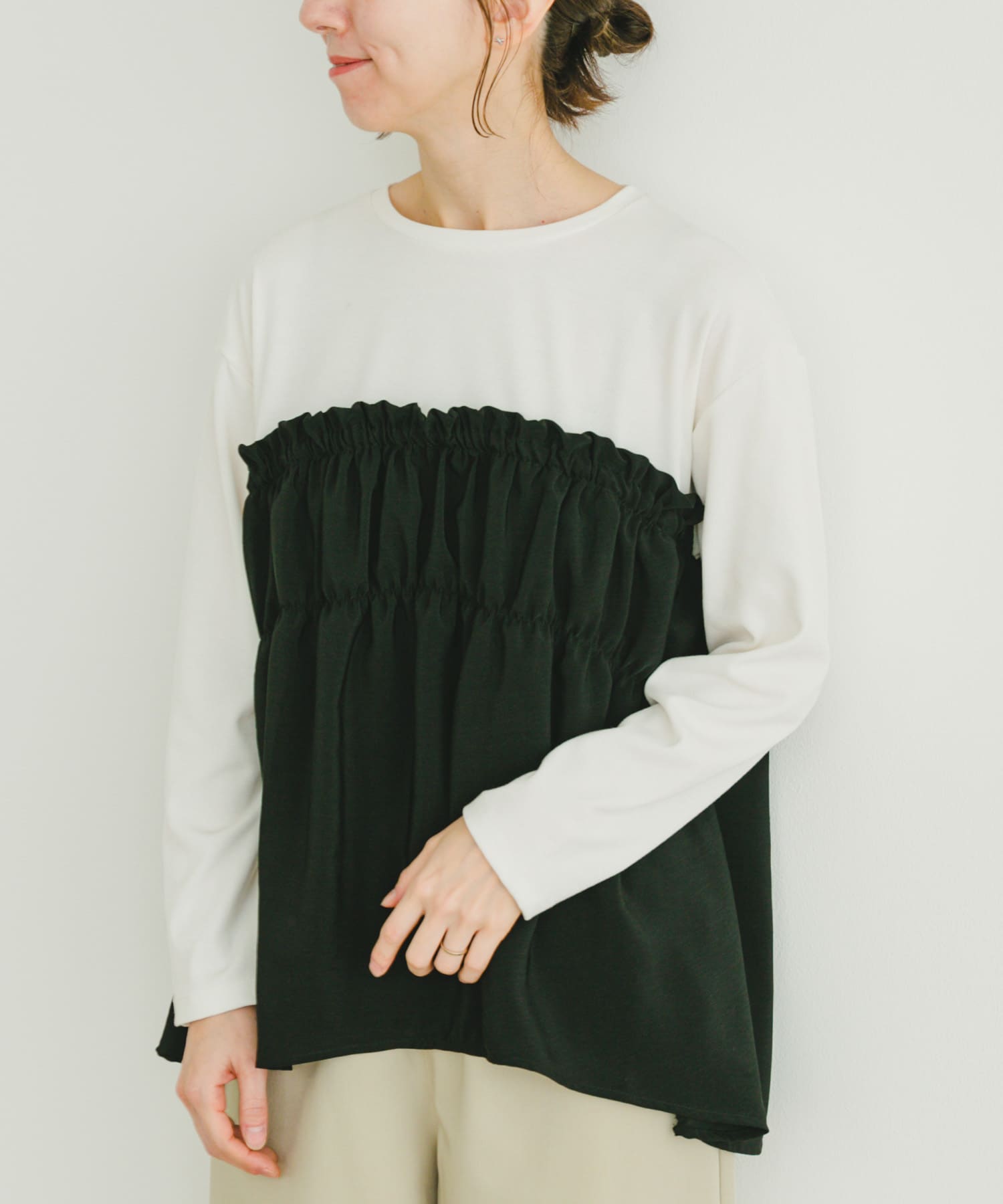 切り替えデザインが目を引くドッキングロングTシャツ◎