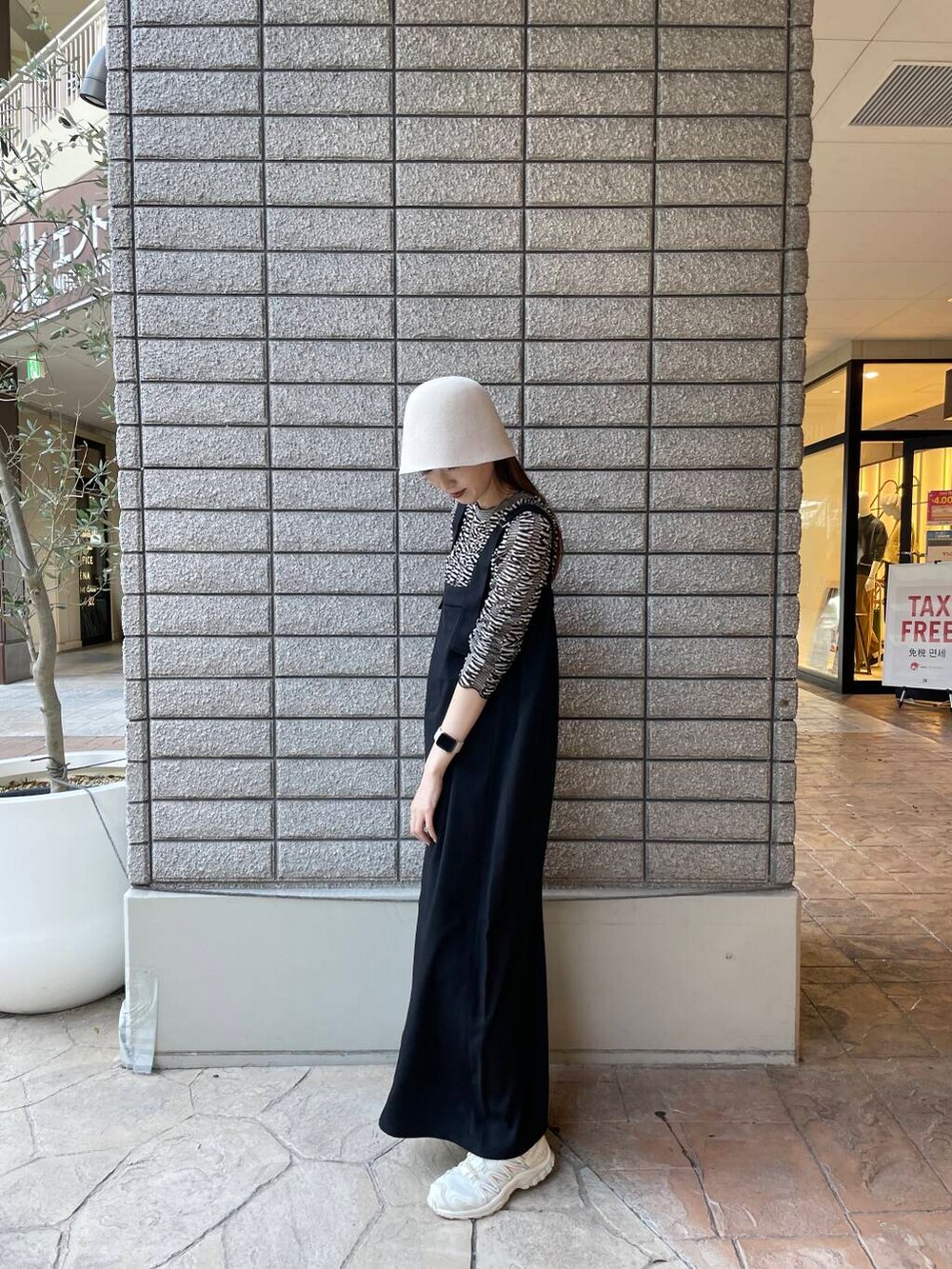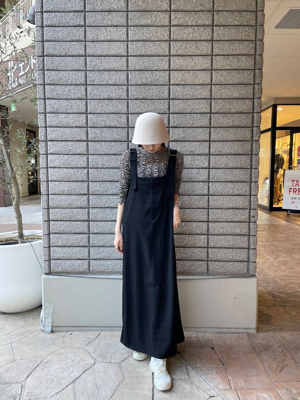 ワンピースの着丈長めですが、肩紐で調節可能になっています!