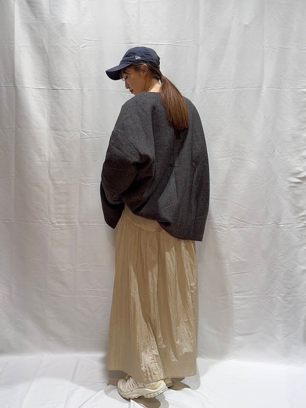 あるコクーンシルエットが特徴で動きやすさと体型カバー効果を発揮してくれるオススメの1着です♪