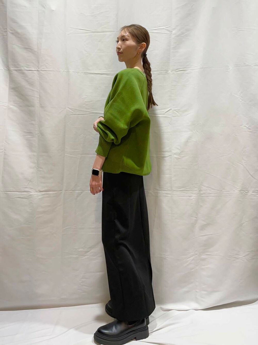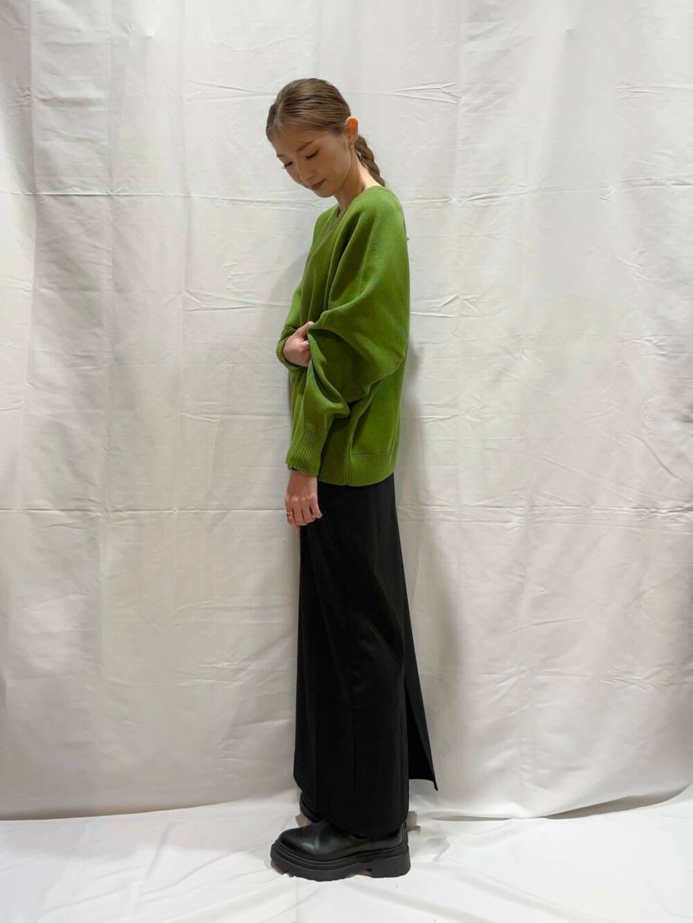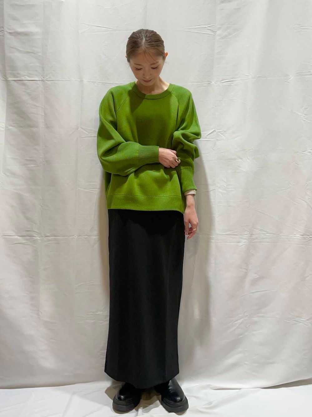 甘くなりすぎずないデティールとスタンダードな丈感が合わせやすく、デイリーユースにぴったりの1着。やや厚みのあるしっかりとした編地も魅力です!