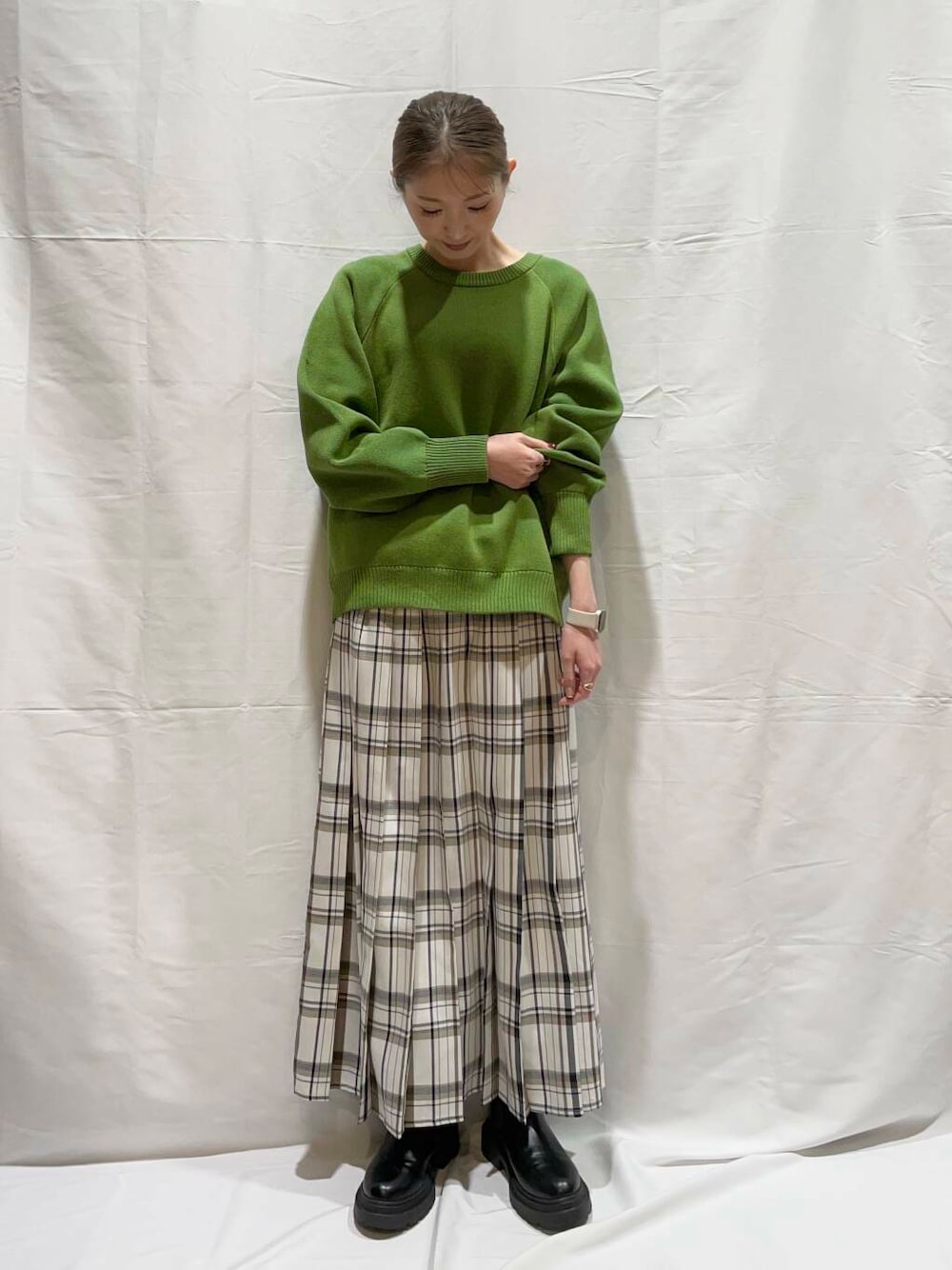甘くなりすぎずないデティールとスタンダードな丈感が合わせやすく、デイリーユースにぴったりの1着。やや厚みのあるしっかりとした編地も魅力です。
