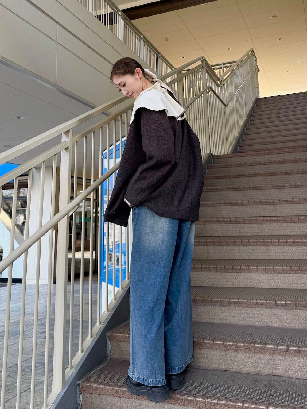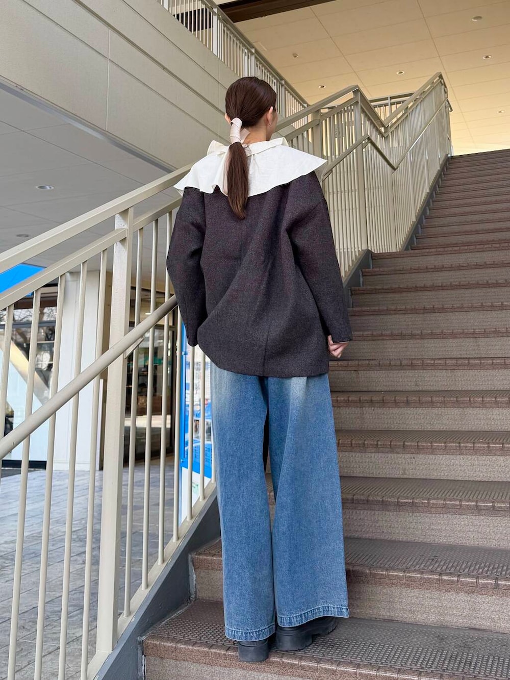 大きなラッフルカラーがコーディネートのアクセントに◎