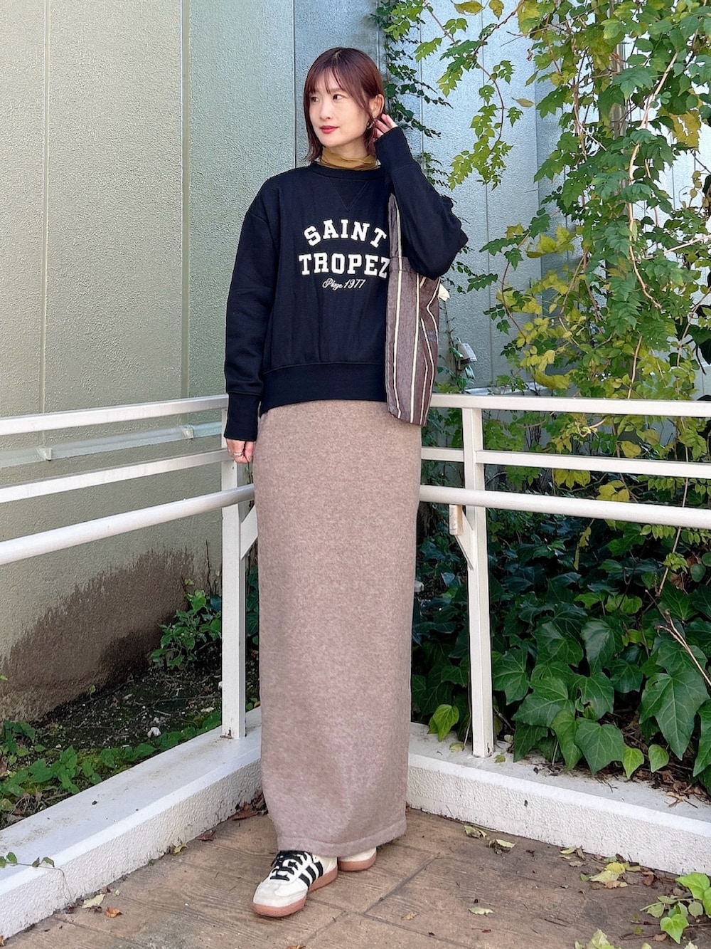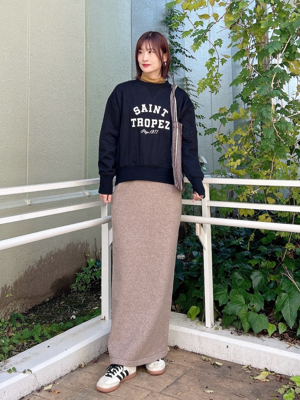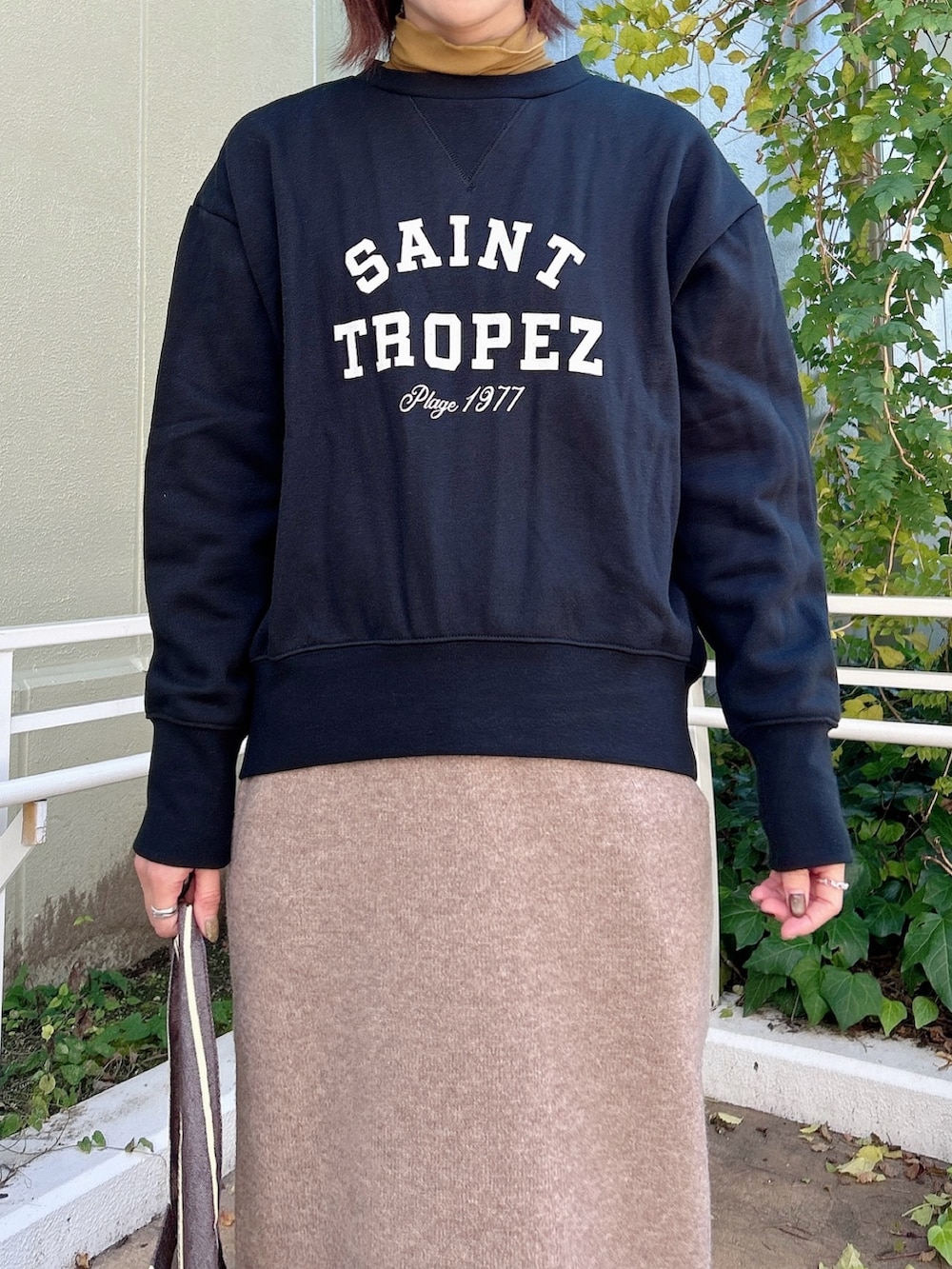 カジュアルなアイテムですが、落ち着いた色味とロゴのデザインで大人っぽく着られるのがポイント◎