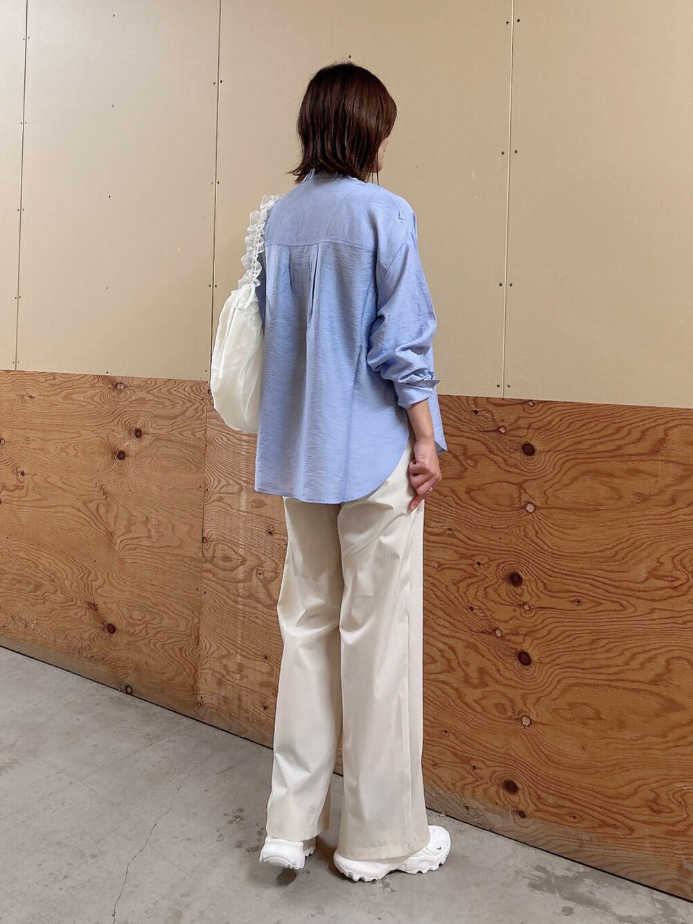 シャツは程よいシアー感でサラッとした着心地です。長過ぎない着丈ですがお尻周りはしっかり隠れます😊