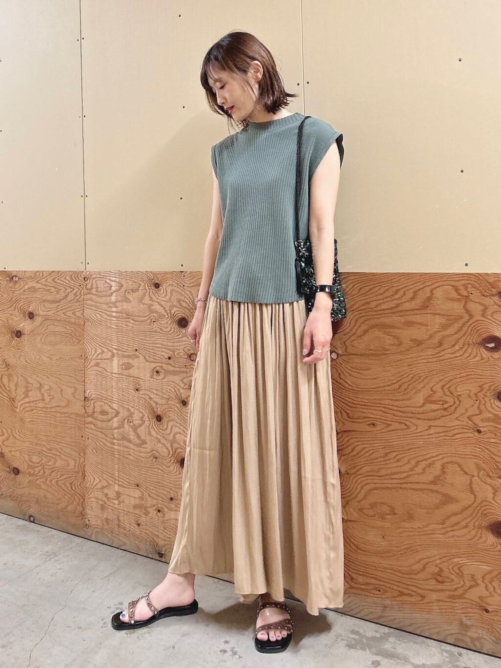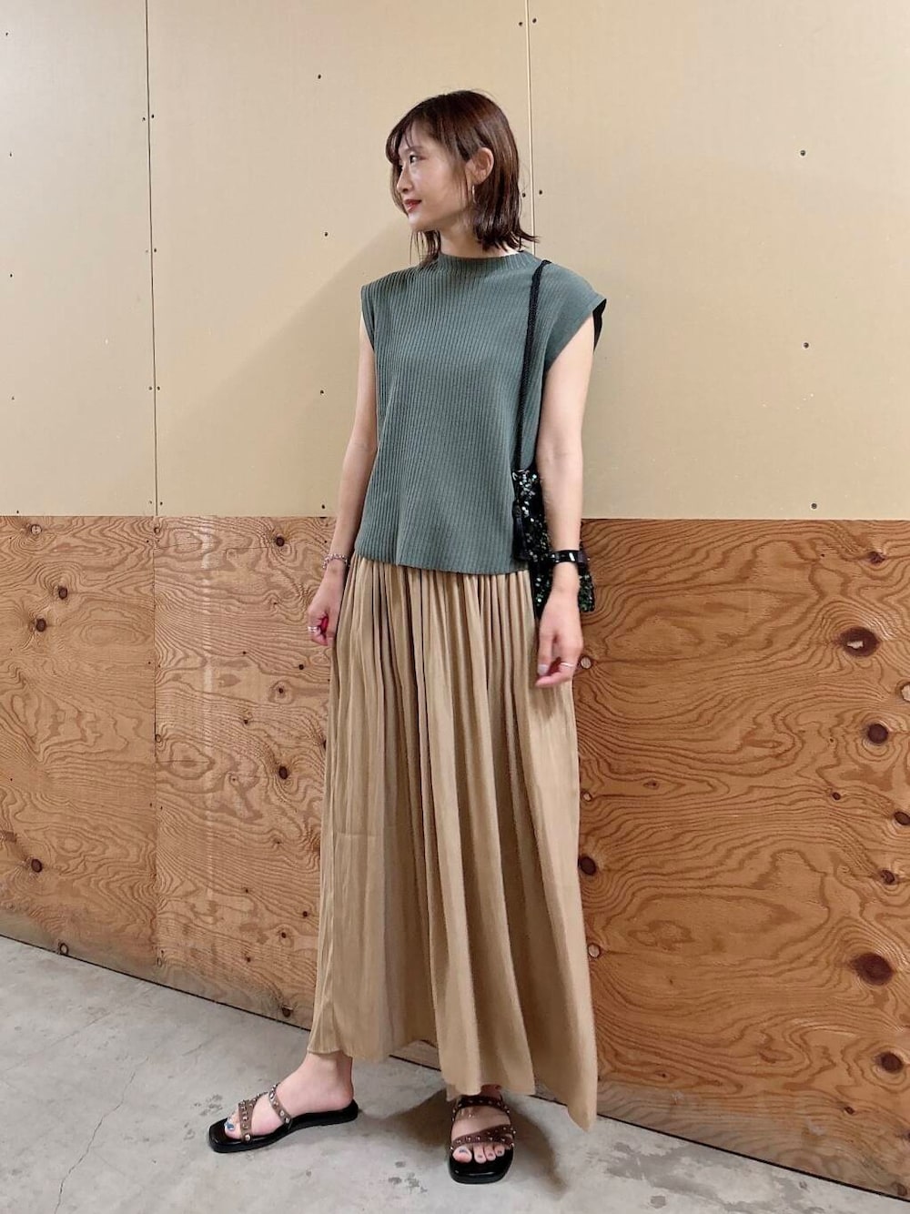 ノースリニットはリブになっているので伸縮性がありとても着やすいです😊