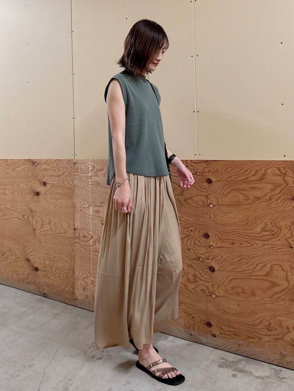 ガウチョパンツはサラッとしていてウエストもゴムでキツさもなく軽い履き心地です。ポケットもしっかりついている所もポイントです👍