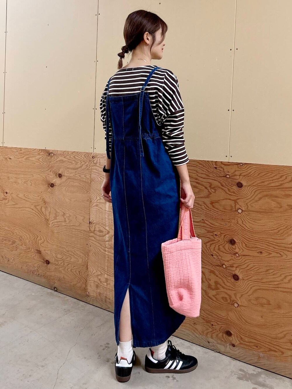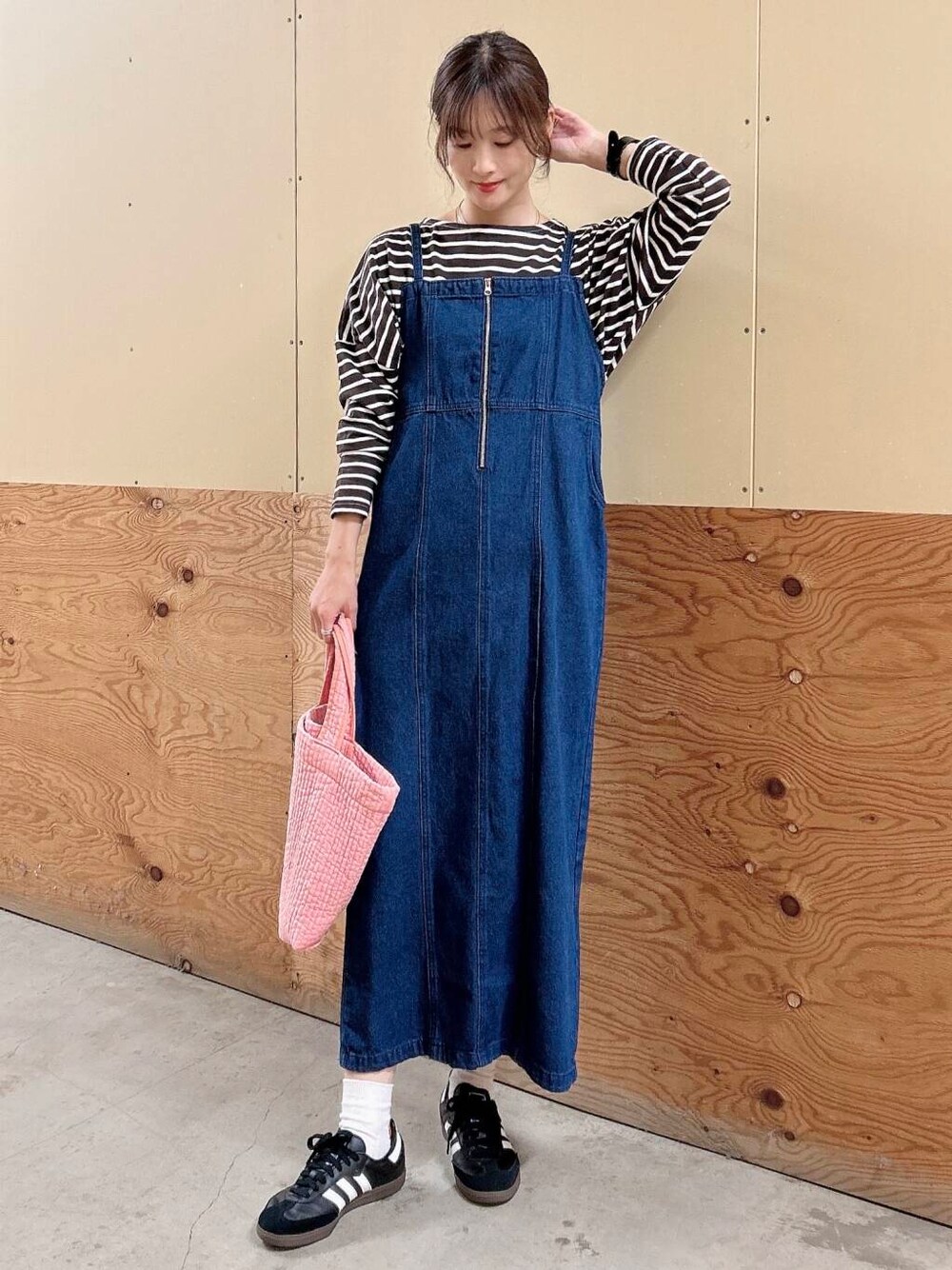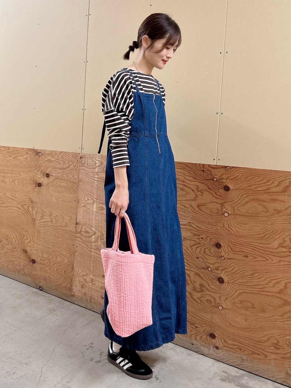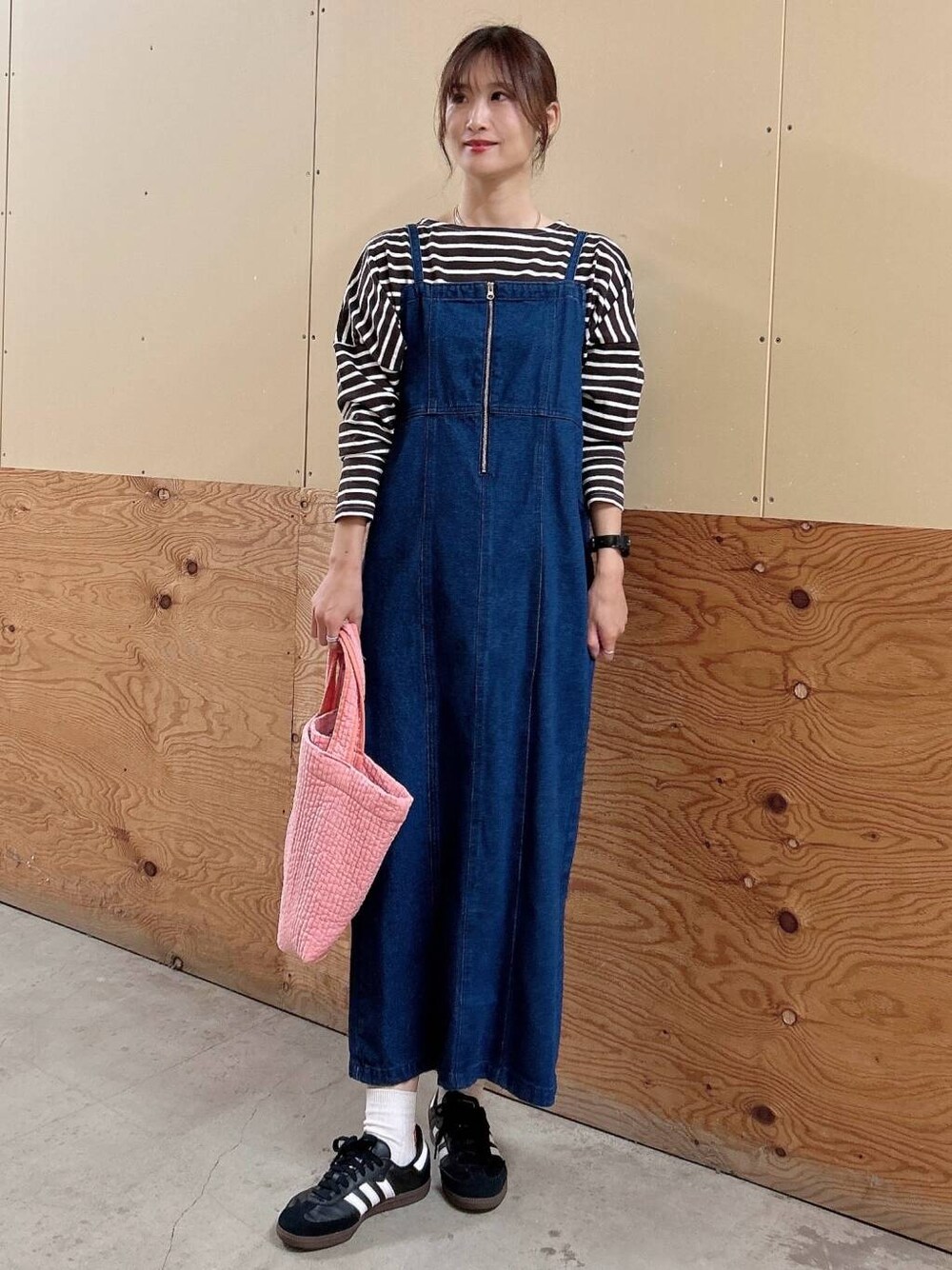 デニムキャミワンピはオールシーズン使えるアイテム。肩紐で長さ調節可能。