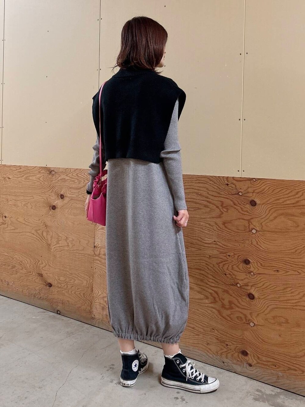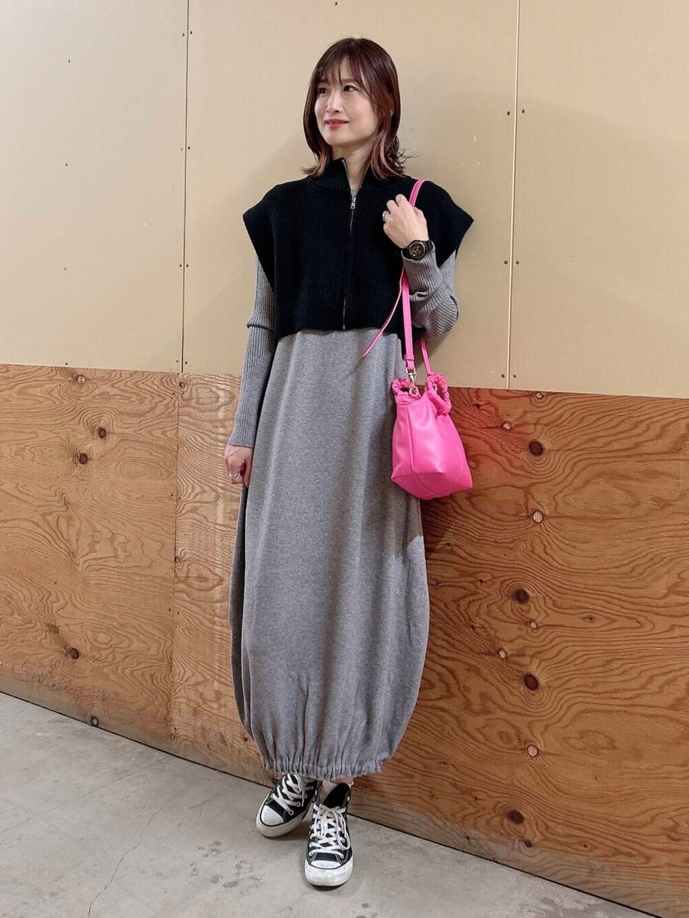 ワンピースの裾がバルーンになっていますが、ゴムなので歩きやすいです😊
