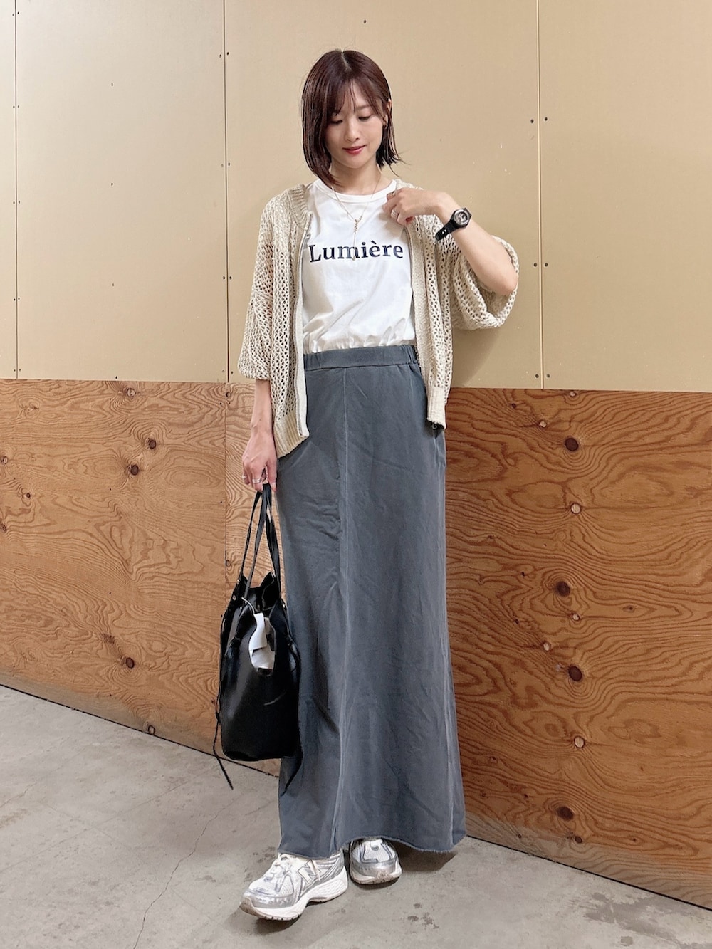 ✔︎ ピグメント加工の独特な風合いが魅力のスウェットスカート。リラックス感がありつつ、ストンと落ちるシルエットでスタイルアップ効果も