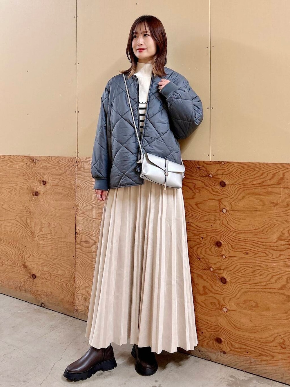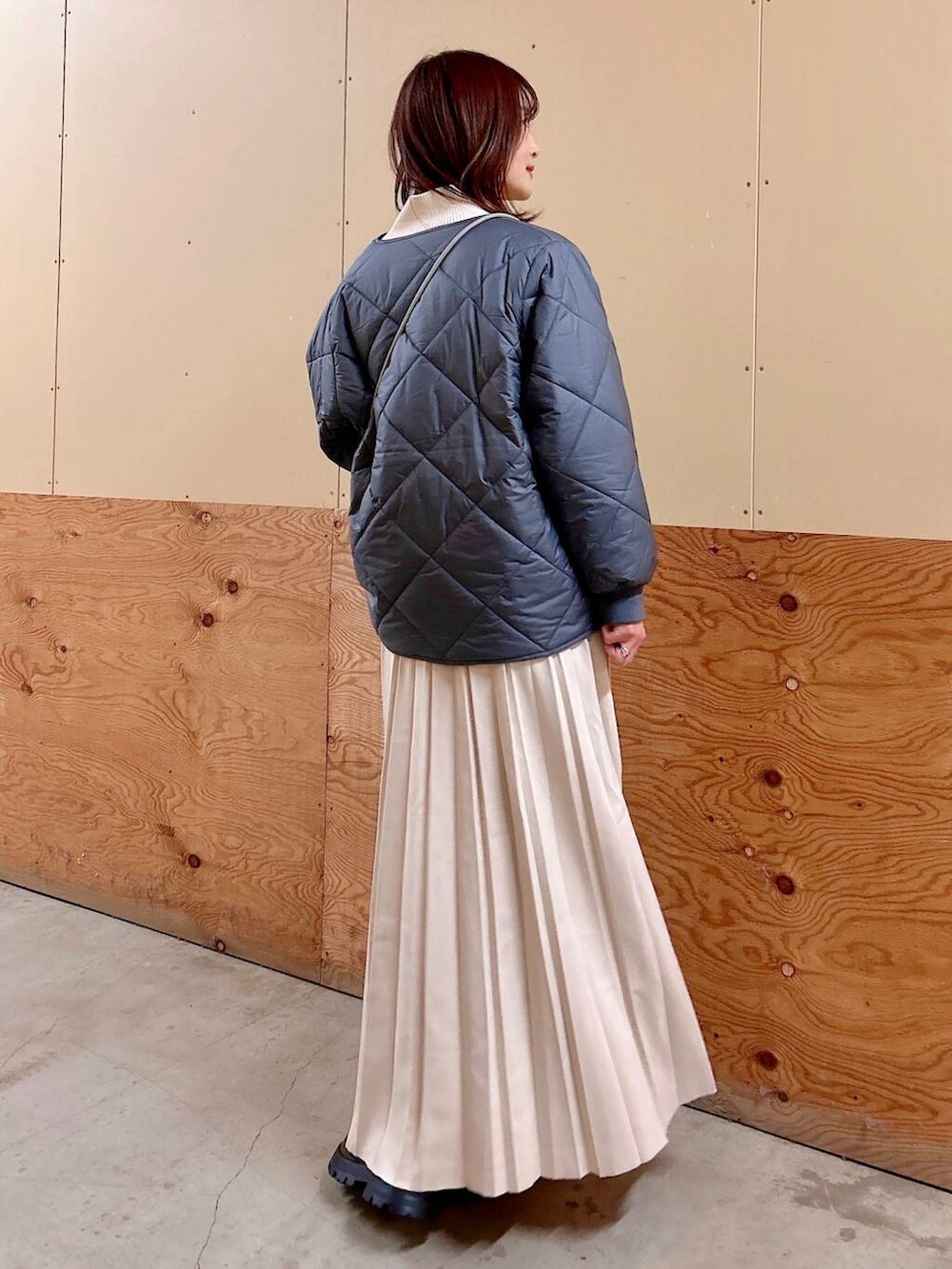 程よいゆとりがあり、スカートにもパンツにも合わせやすい着丈になっています!