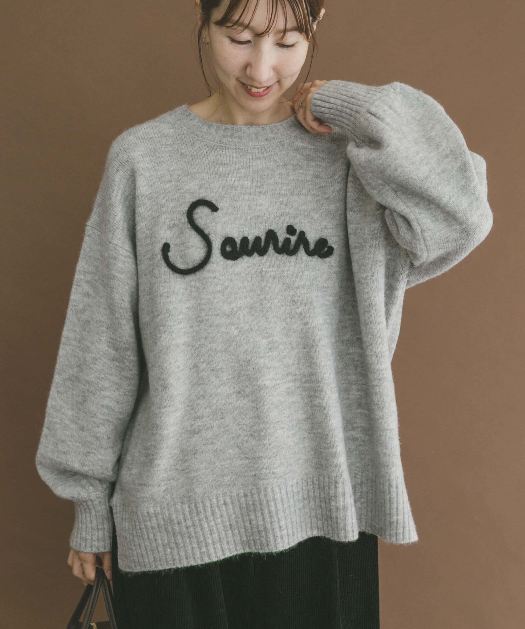 ✔︎刺繍ロゴが可愛いニットはオーバーサイズでゆるっと着れます◎