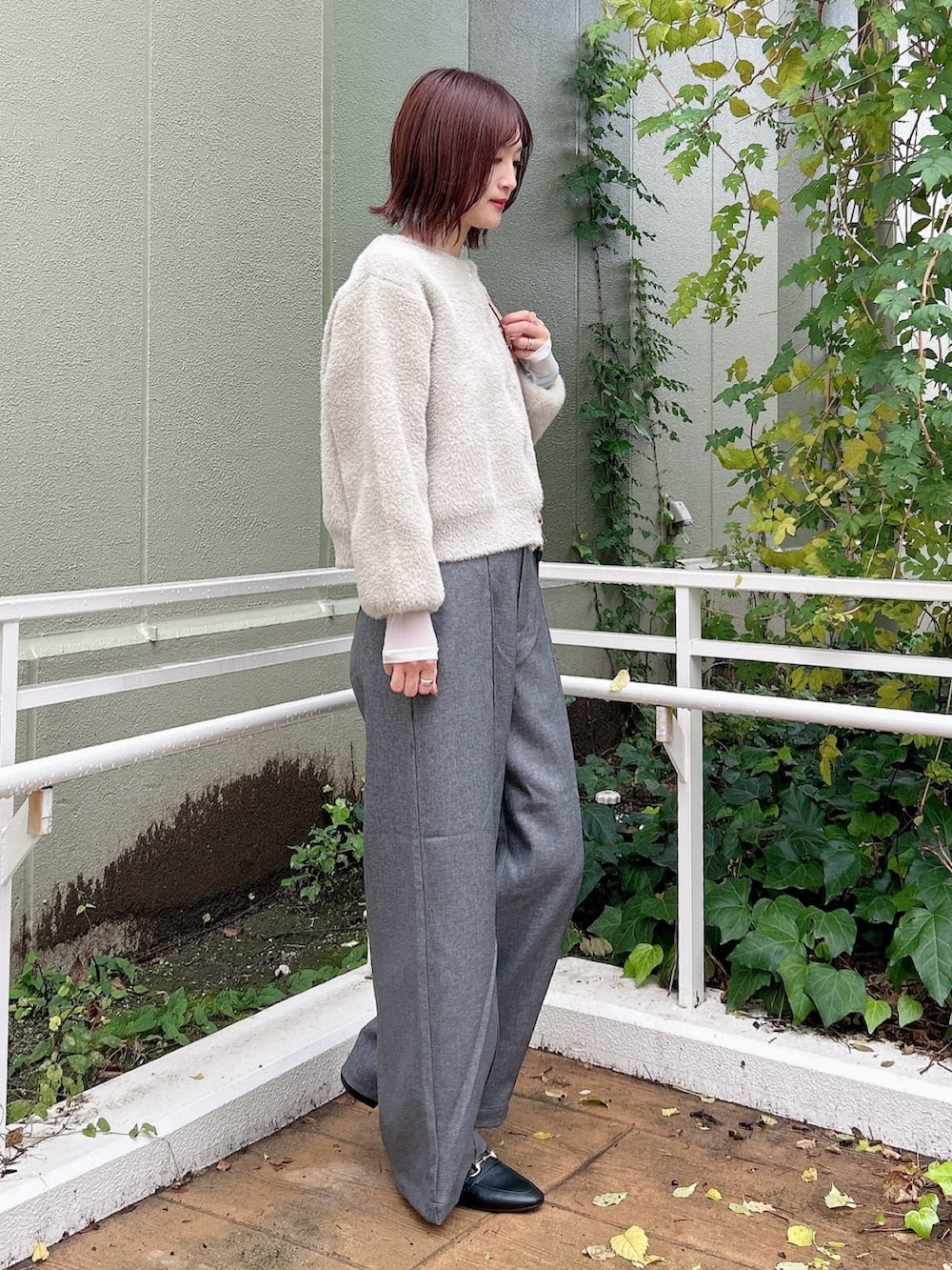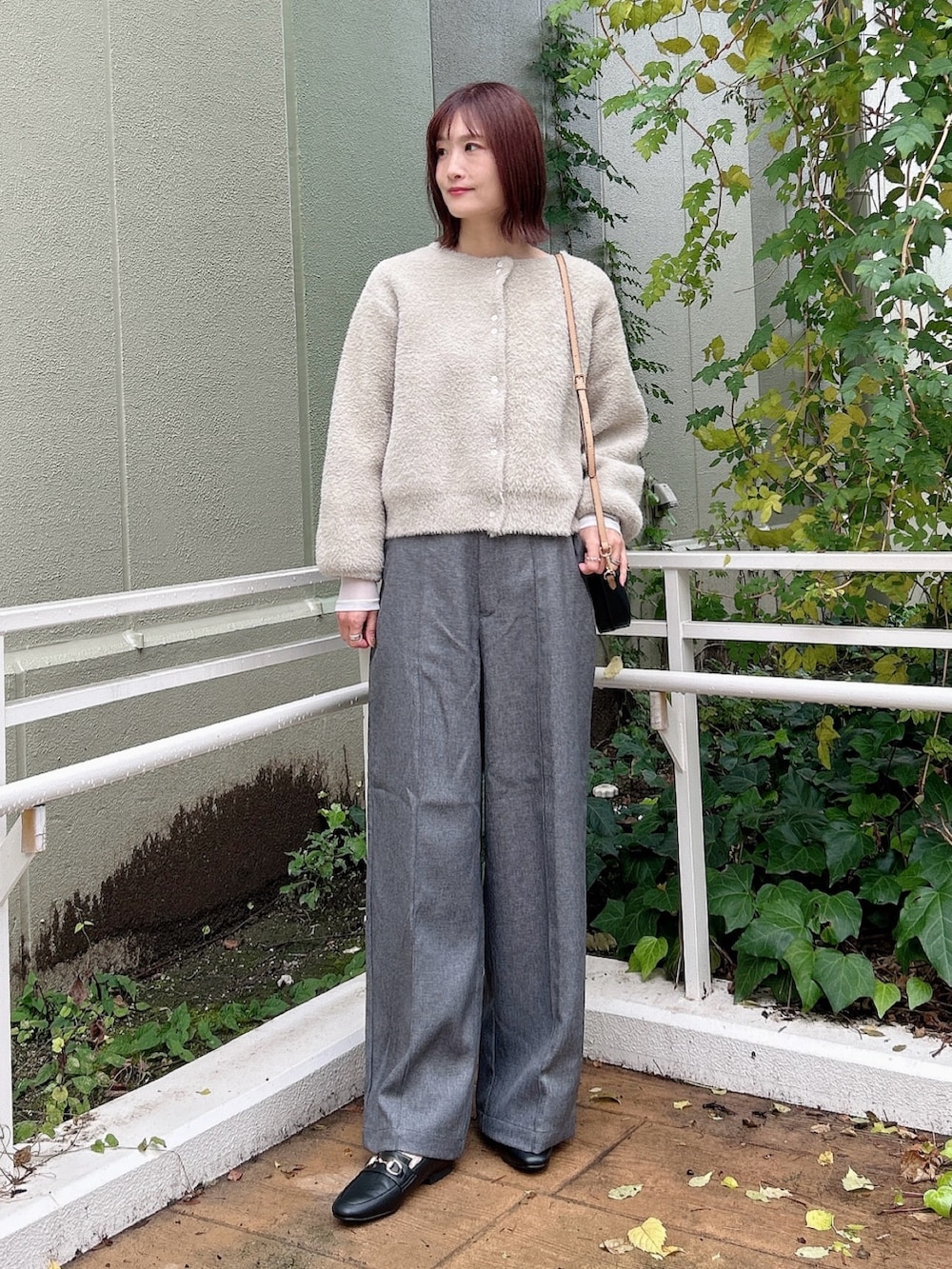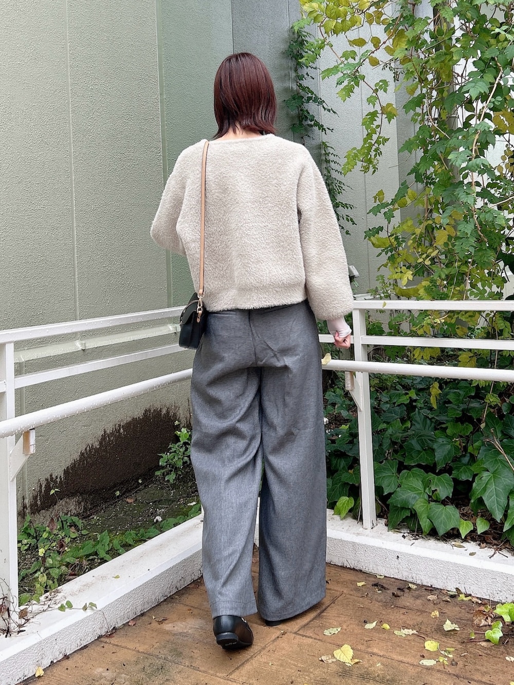✔︎パンツはハイウエストできれい見えするのでオフィスコーデにも使えます😊