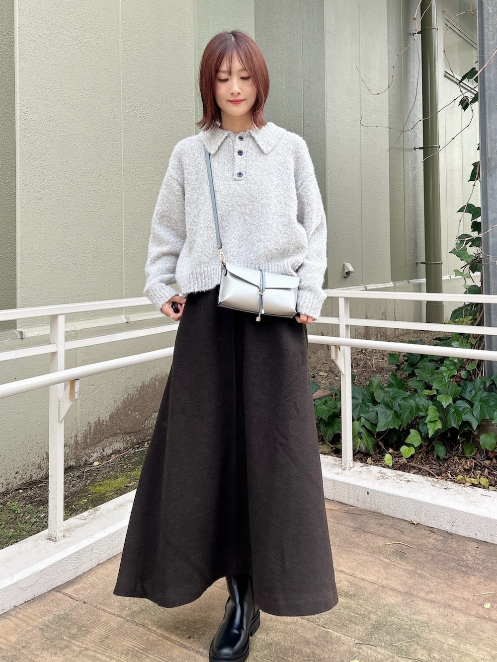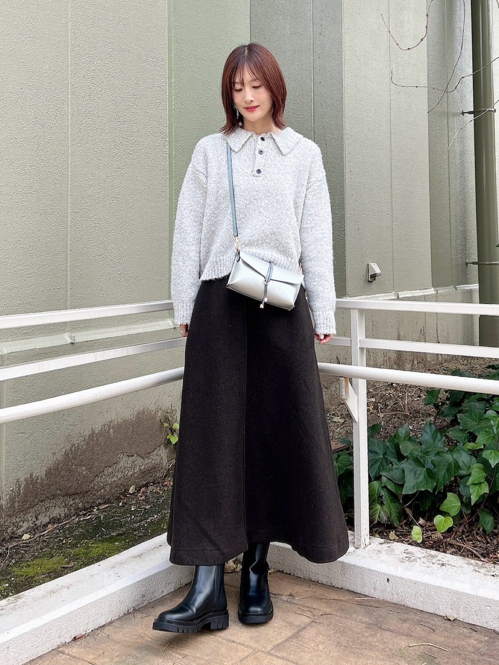 ✔︎ウール混と厚手の生地感で暖かさばっちりのスカート。フレアのシルエットもキレイです◎