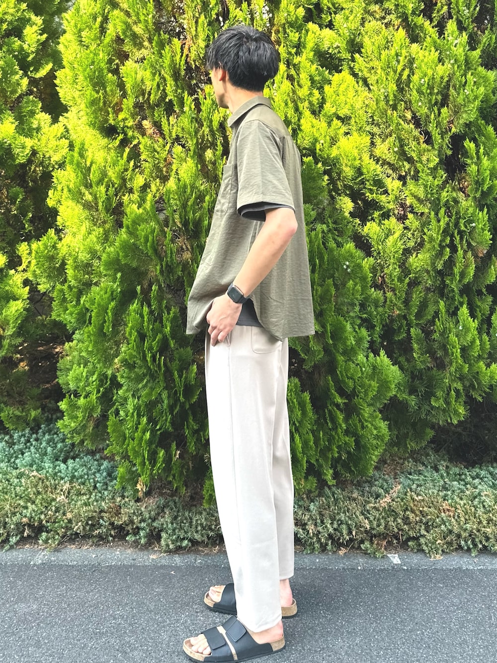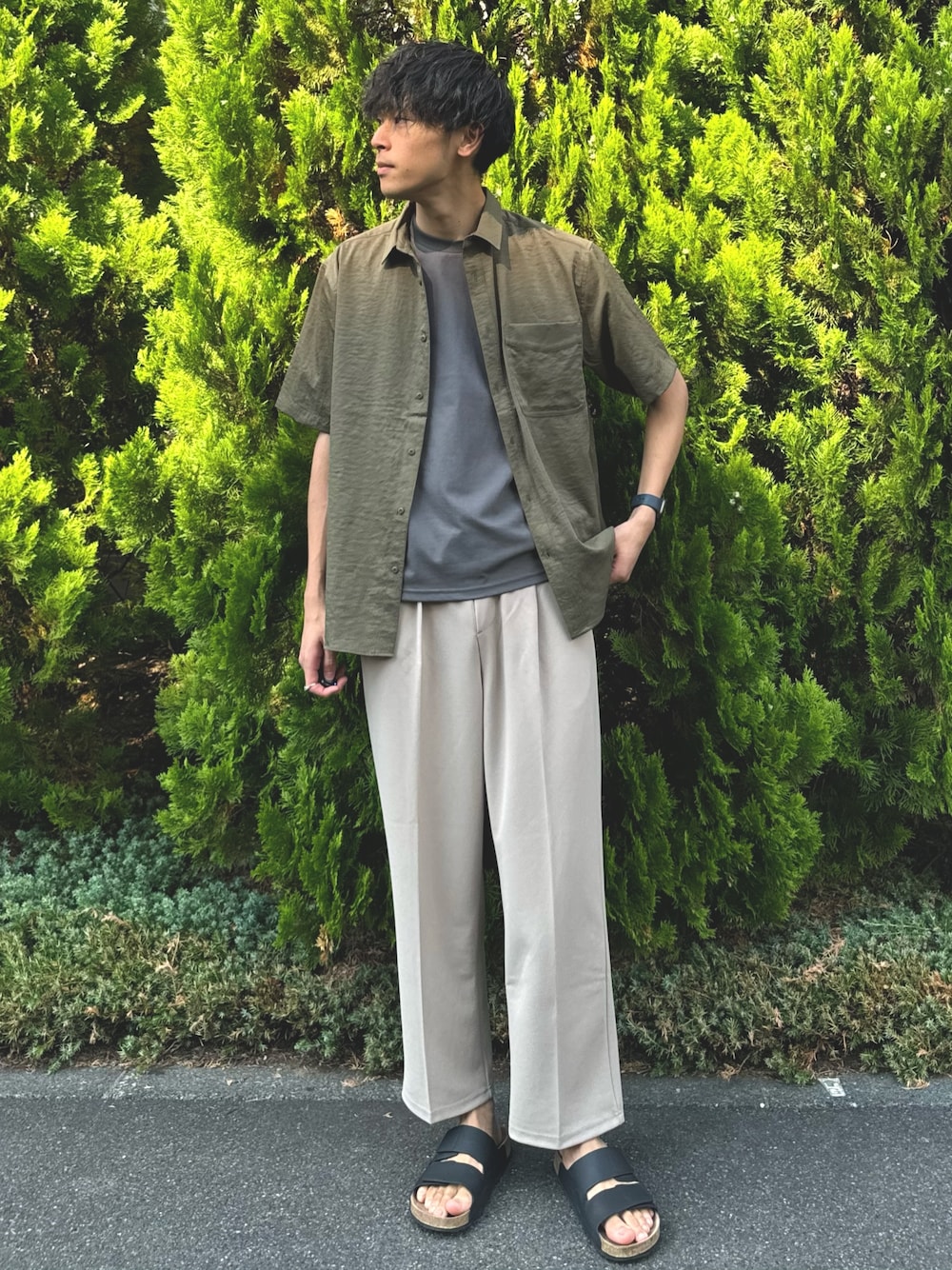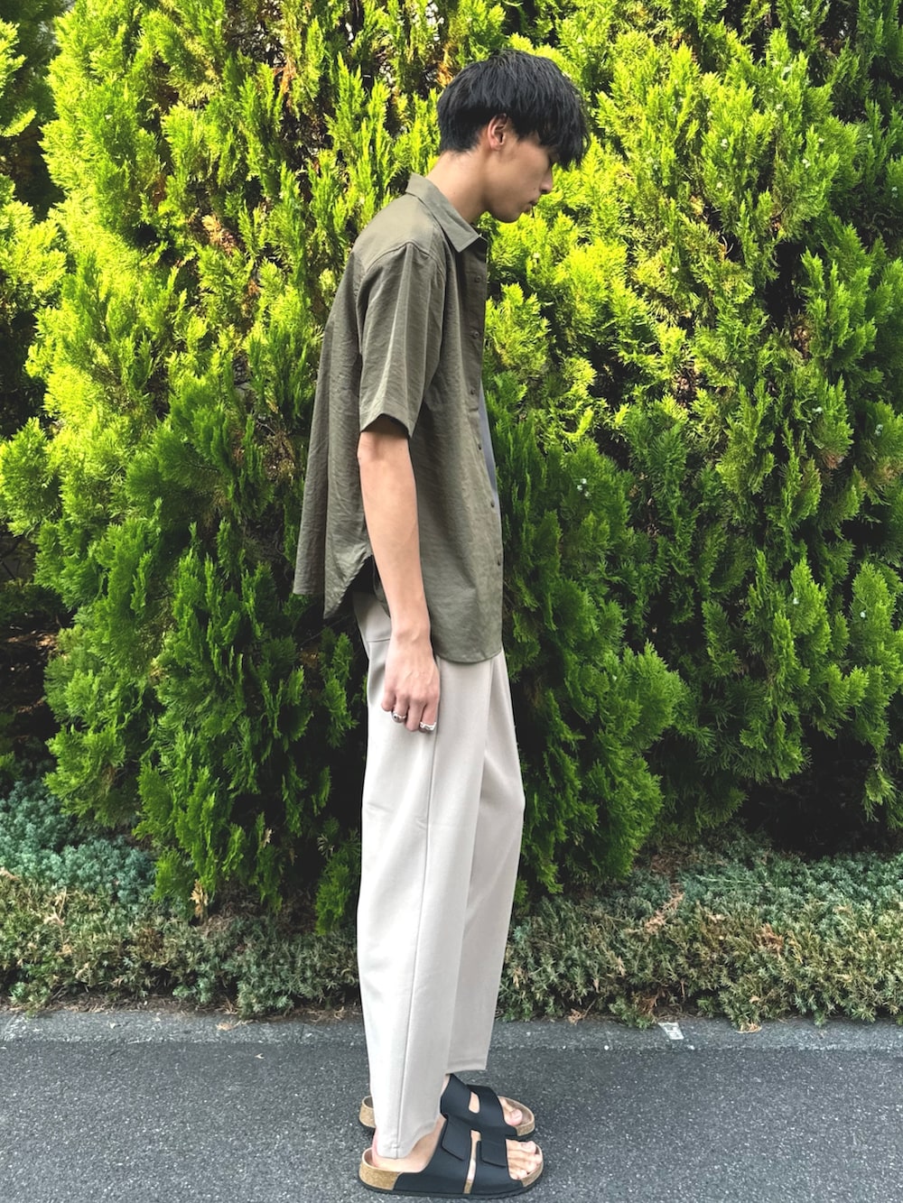 シワ感のあるシャツをメインに晩夏スタイル