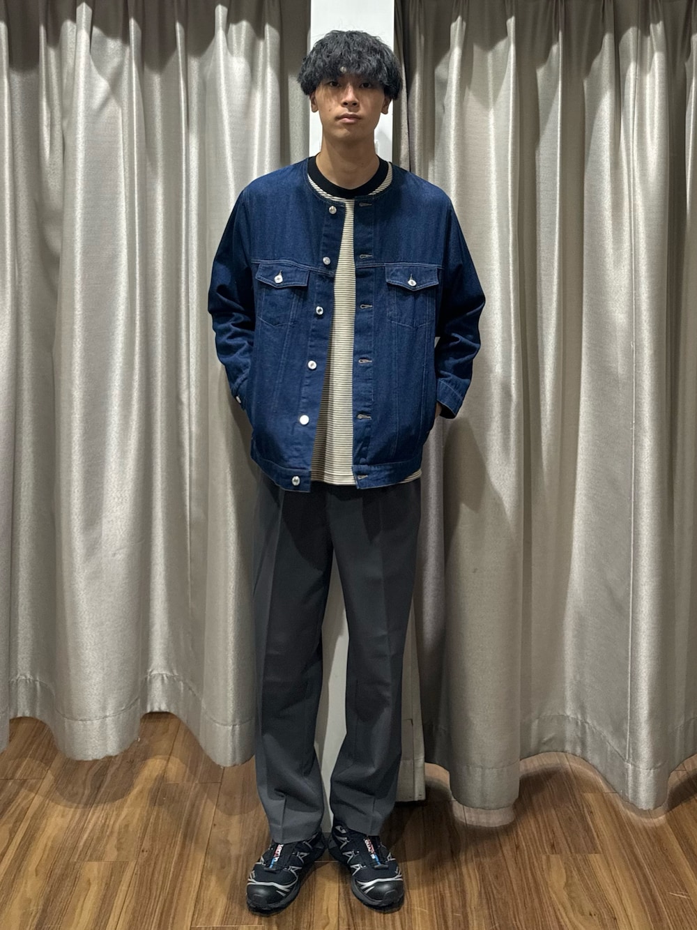 ◯Denim No Collar Jacket