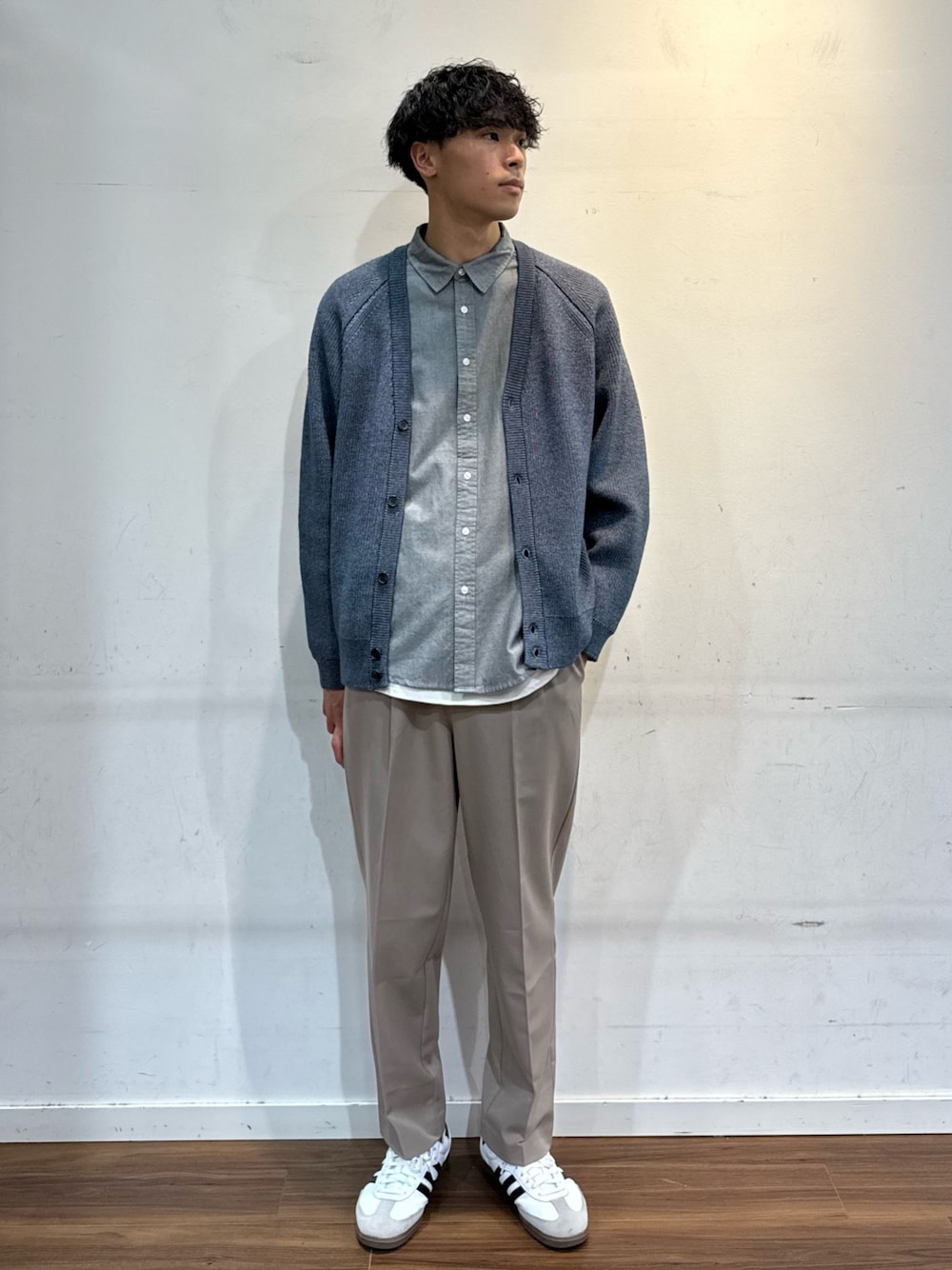 膨らみのあるカーディガン。暖かく、軽い。明る過ぎないブルーが◎