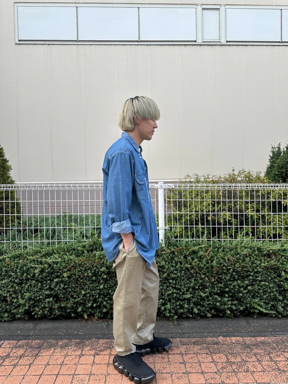 ◯ダブルポケットウォッシュドデニムシャツ